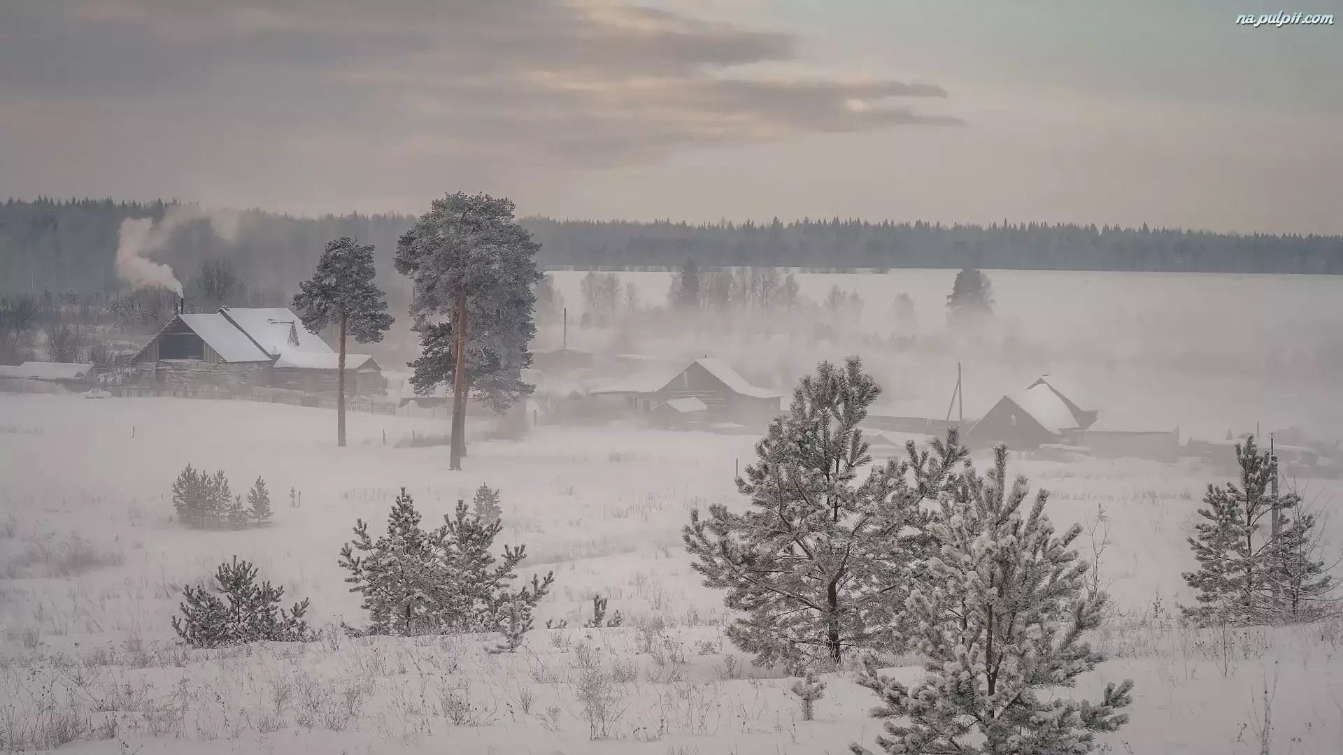 Tagi: Domy Wieś Śnieg Zima Drzewa