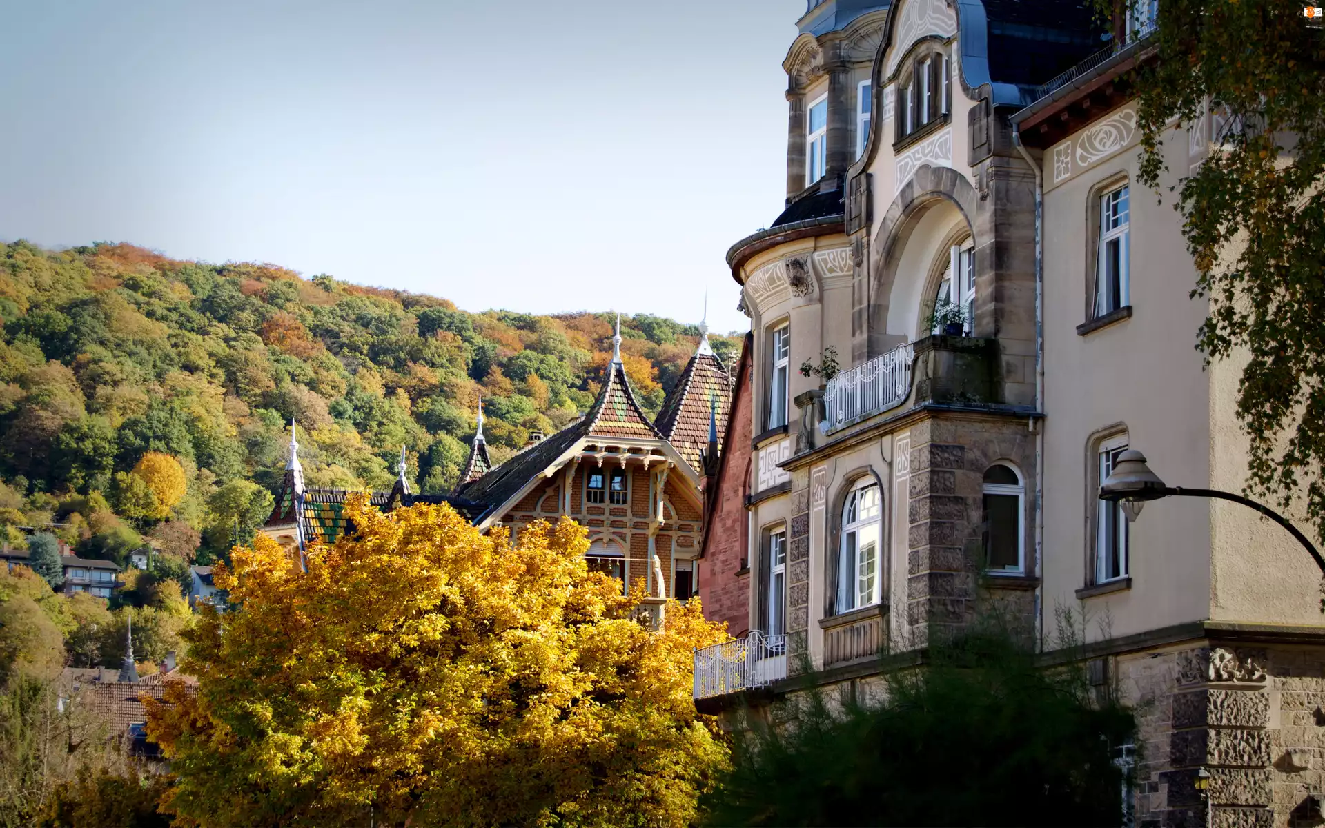 Jesień, Niemcy, Domy, Heidelberg, Las