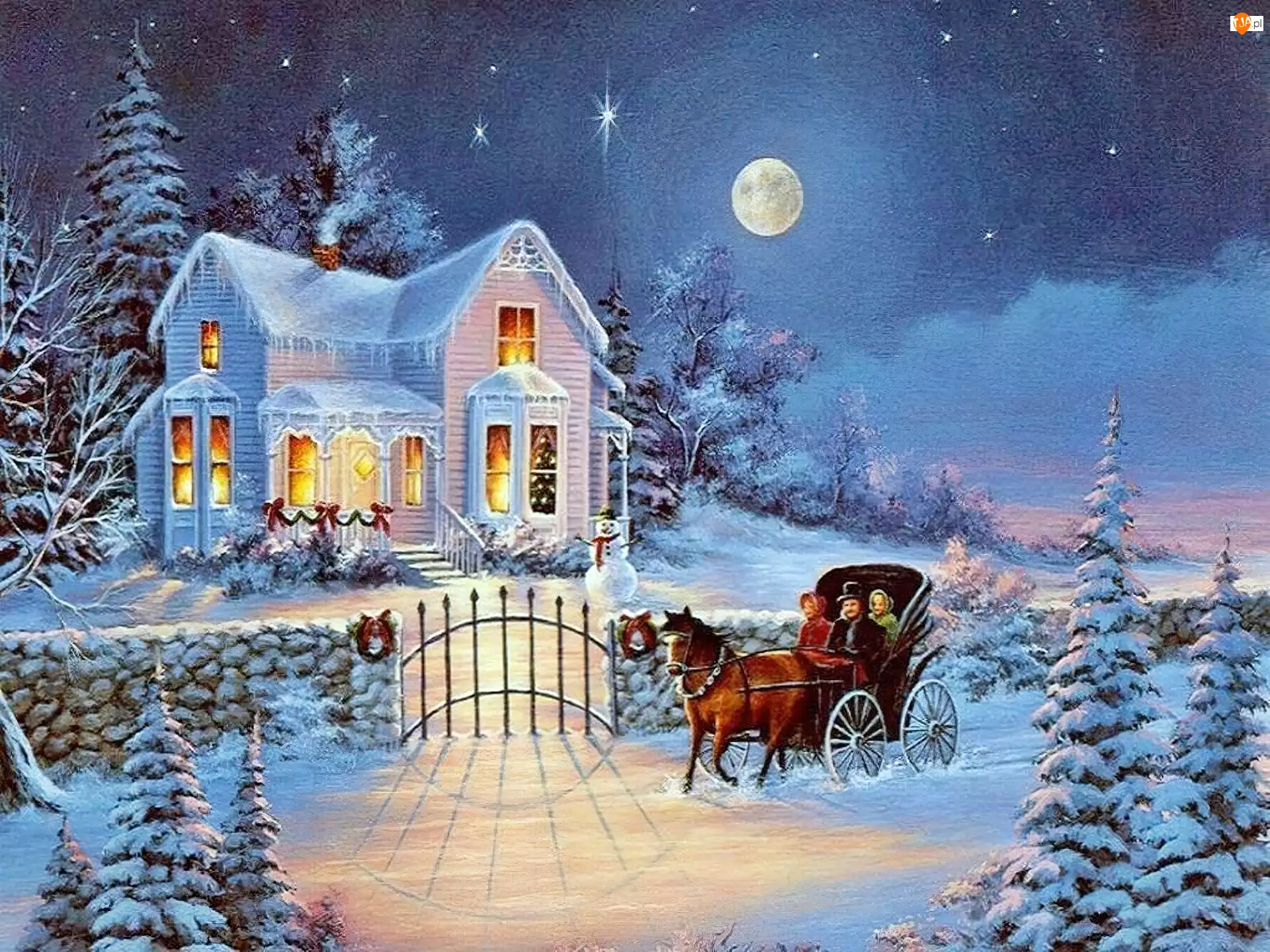 Willa, Dom, Zima, Narodzenie, Dorożka, Boże