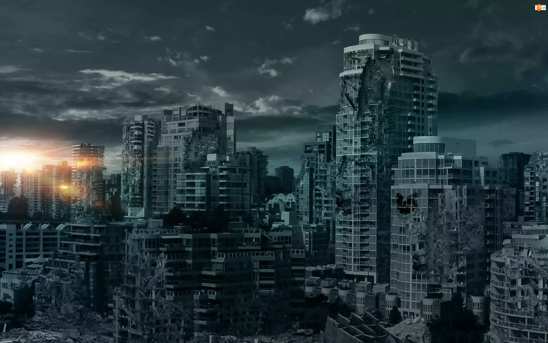 Drapacze, Słońce, Chmur, Przebijające