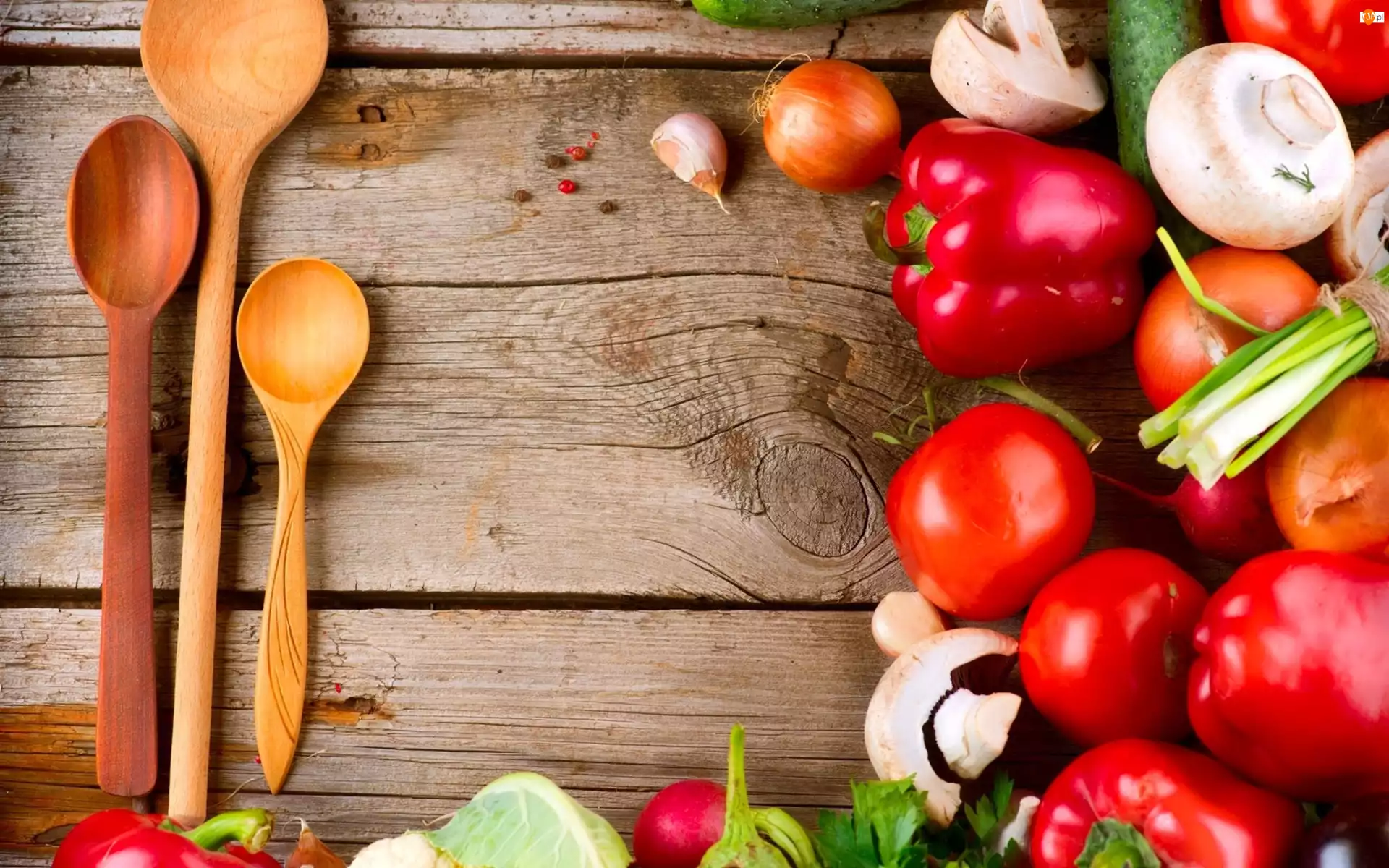 Drewniane, Cebula, Papryka, Pomidory, Łyżki, Pieczarki, Czosnek