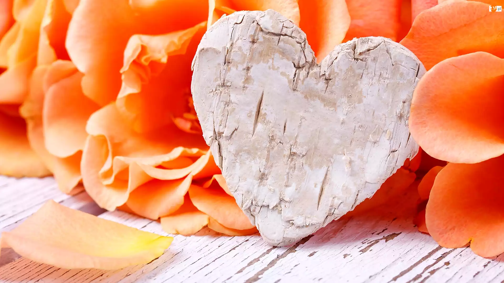 Drewniane serce z płatkami róż