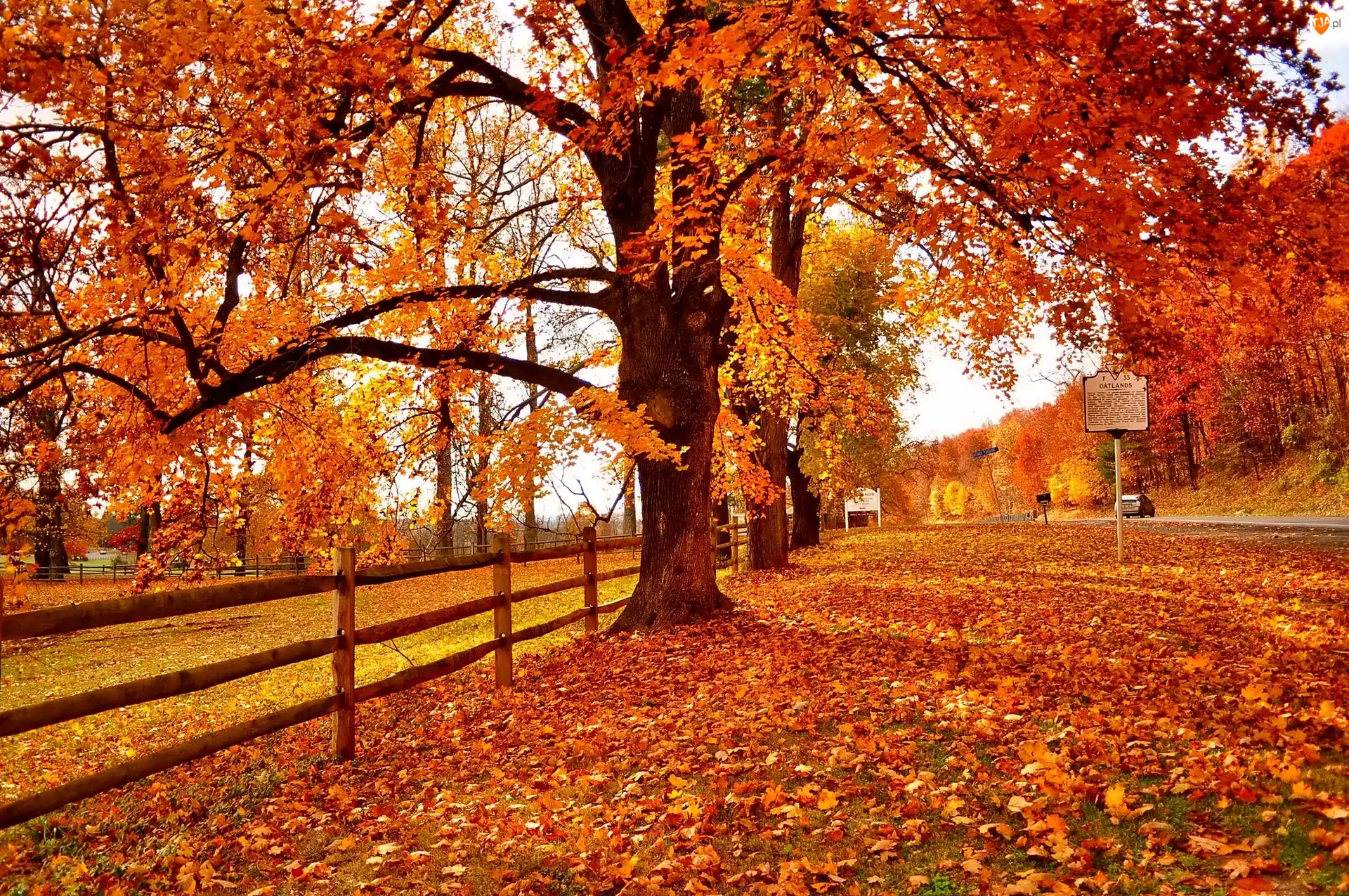 Droga, Jesień, Drzewa