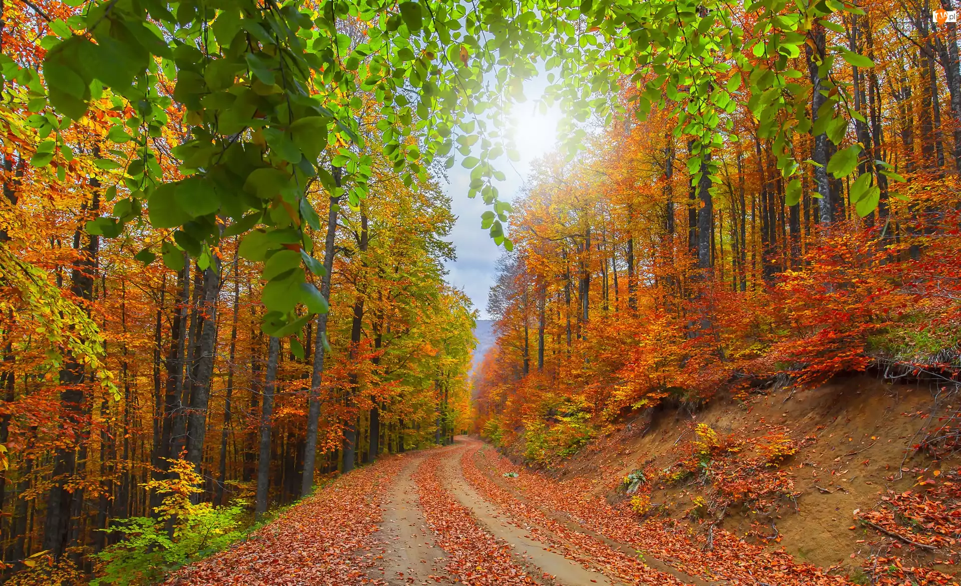 Droga, Las, Jesień, Liście, Drzewa, Opadłe