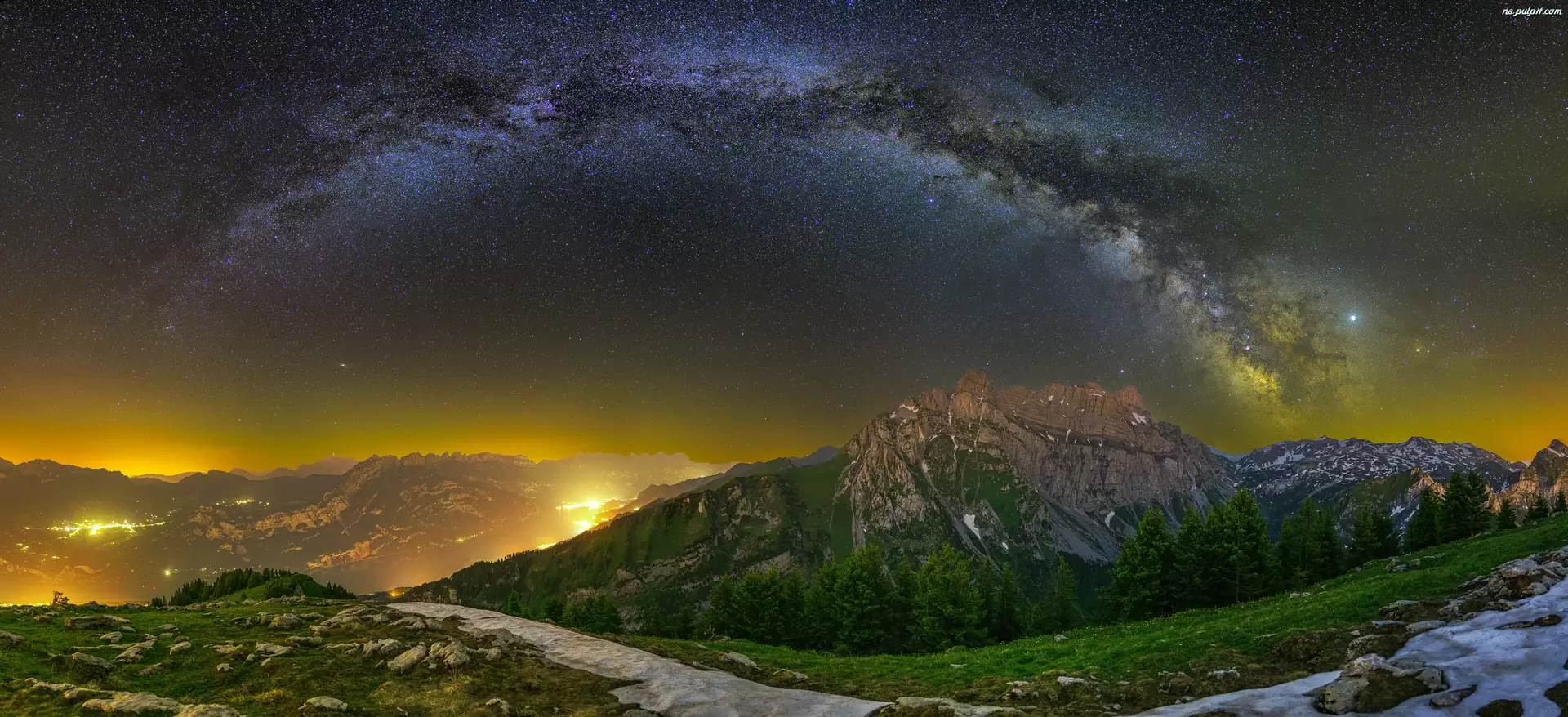 Droga Mleczna, Góra Nuenchamm, Szwajcaria, Galaktyka, Kanton Glarus, Alpy Glarneńskie, Góry