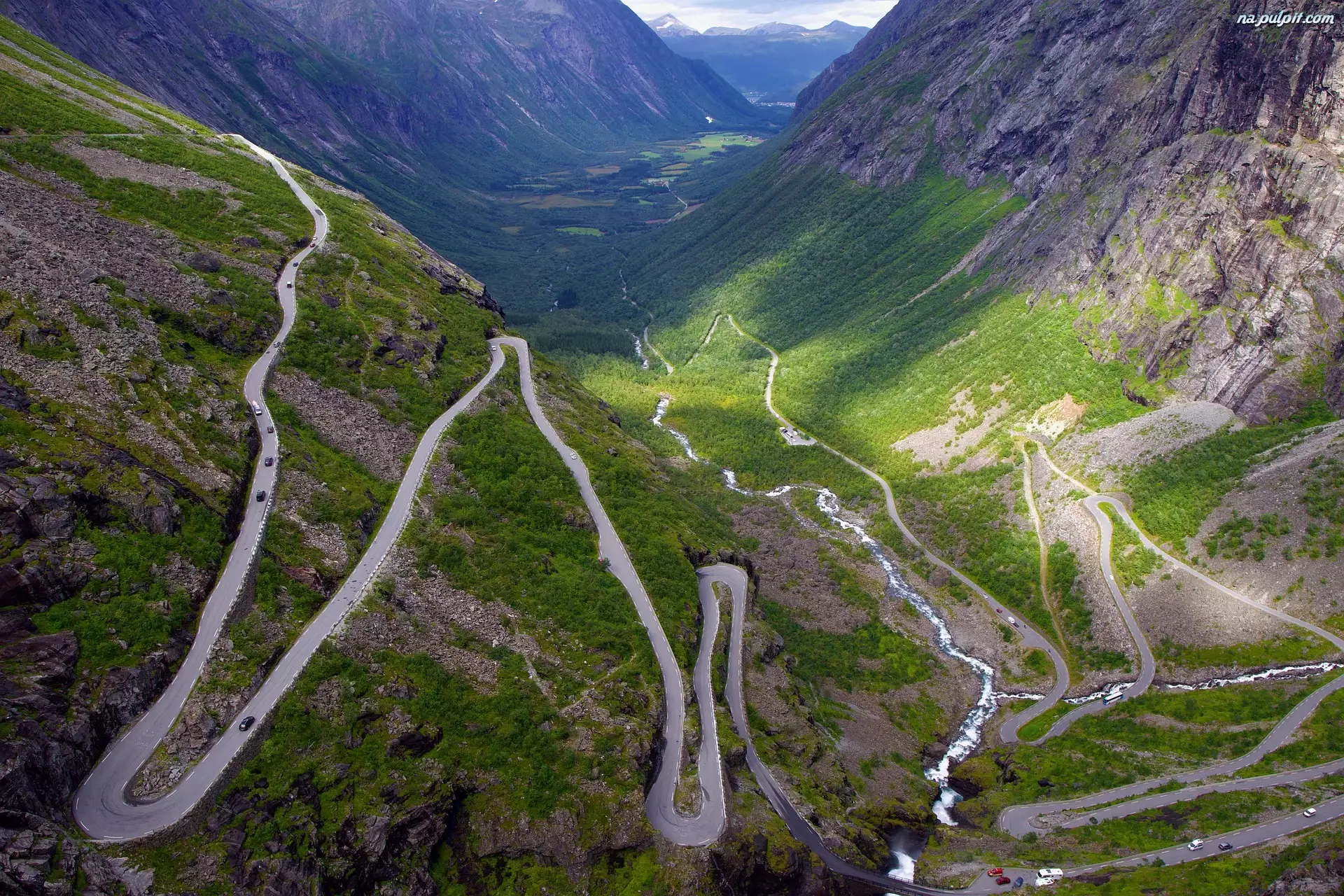 Drogi, Droga Trolli, Norwegia, Góry, Gmina Rauma, Dolina Romsdalen, Wąwóz