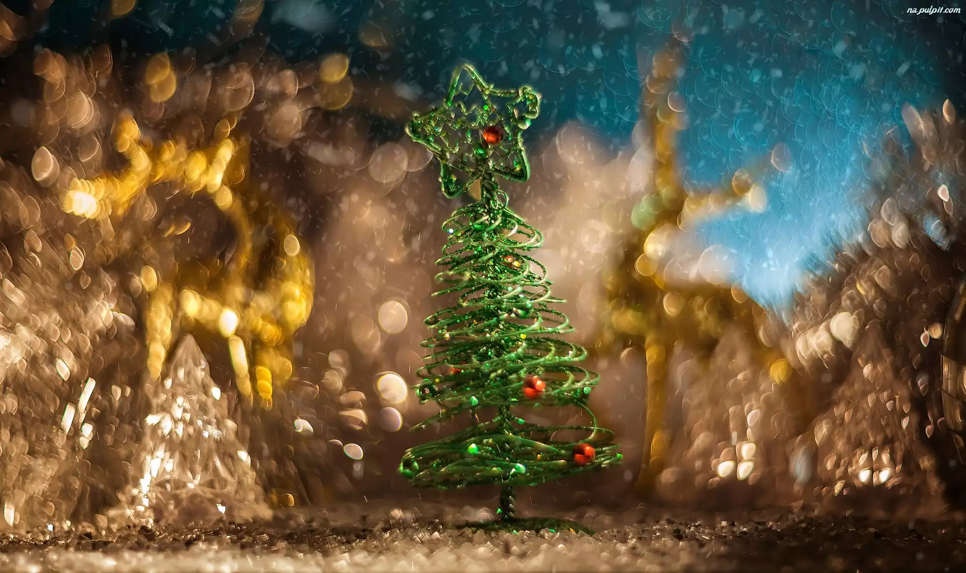 Choinka, Bokeh, Ozdoba, Druciana, Boże Narodzenie