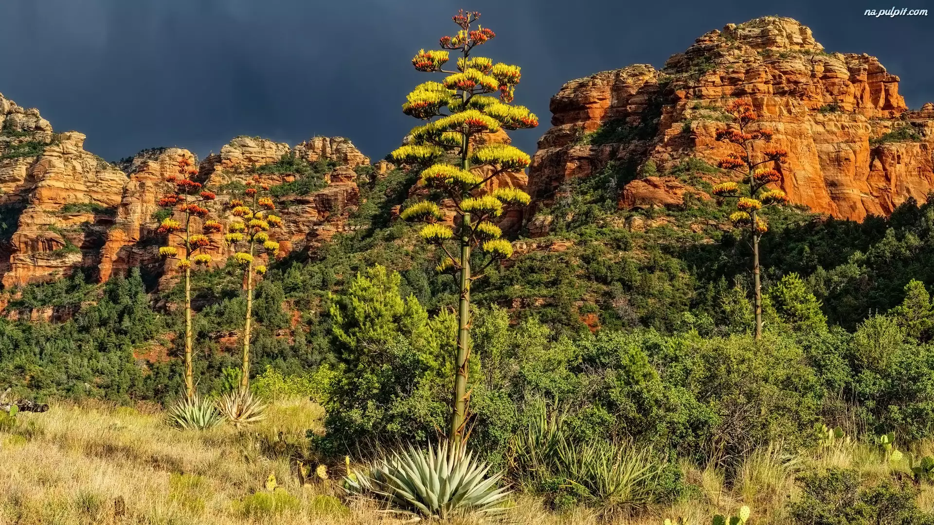 Drzewa, Agawy, Stany Zjednoczone, Sedona, Góry
