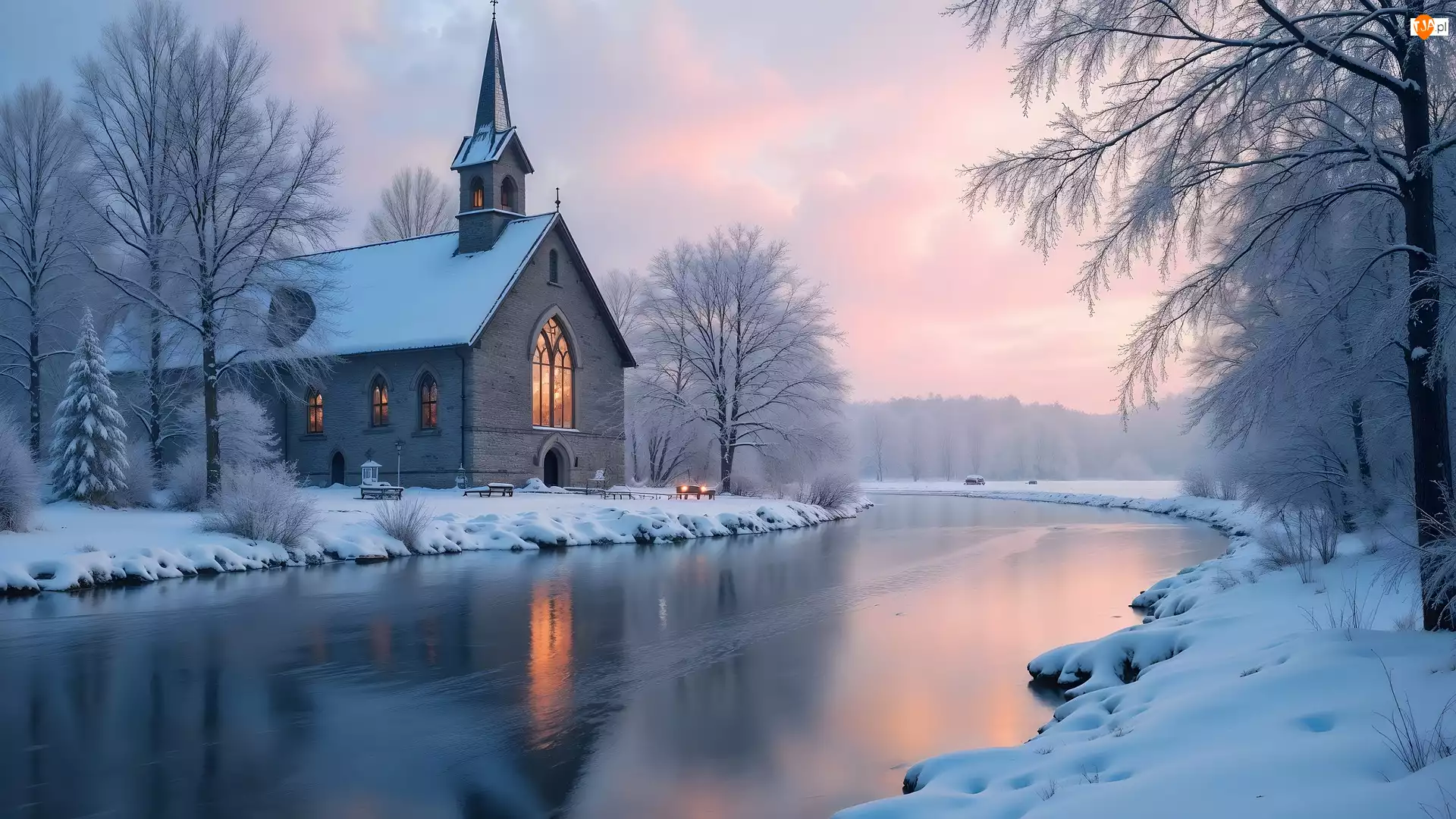 Tagi: Drzewa AI Kościół Rzeka Zima