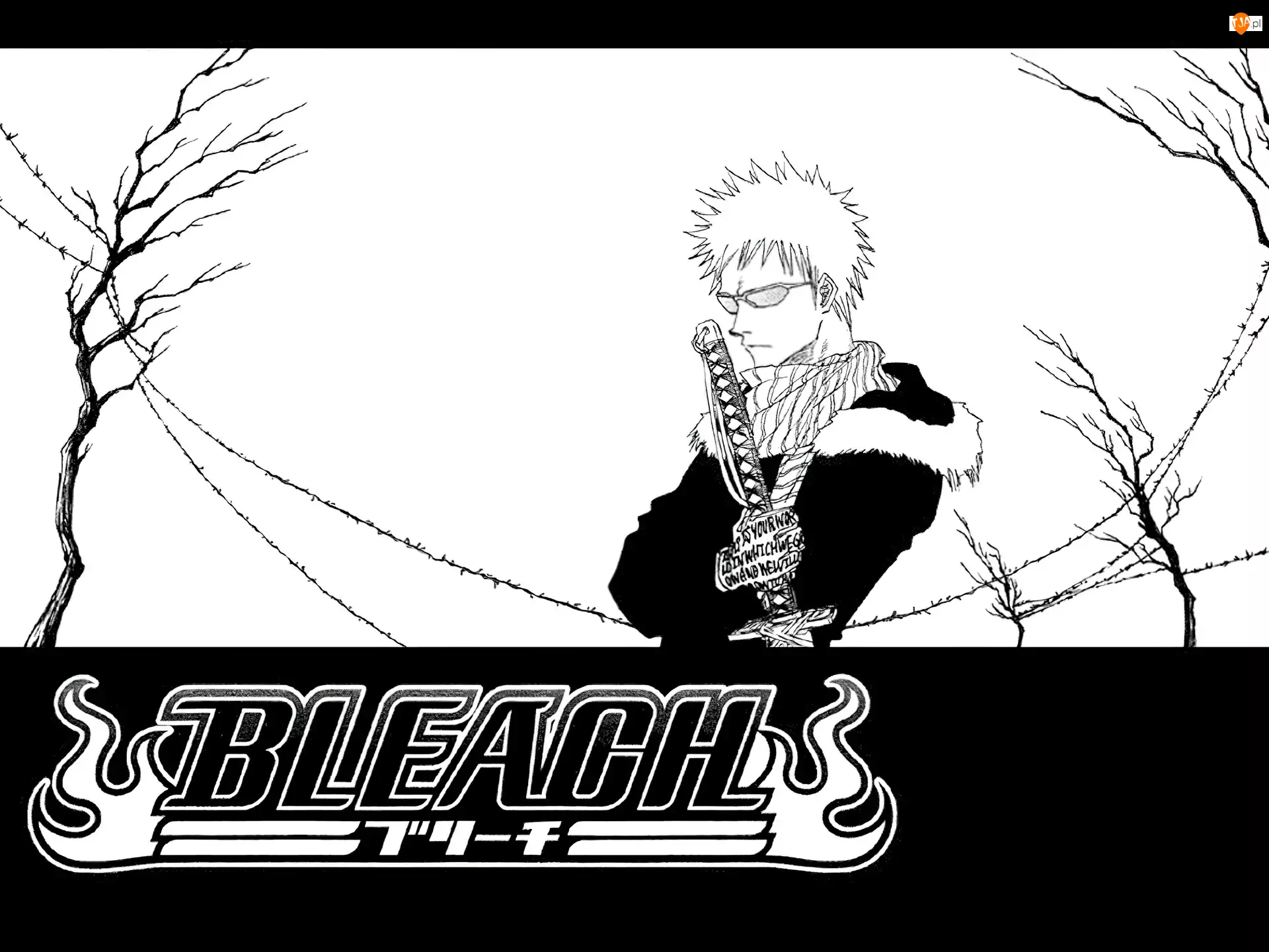 drzewa, Bleach, postać, napis, miecz