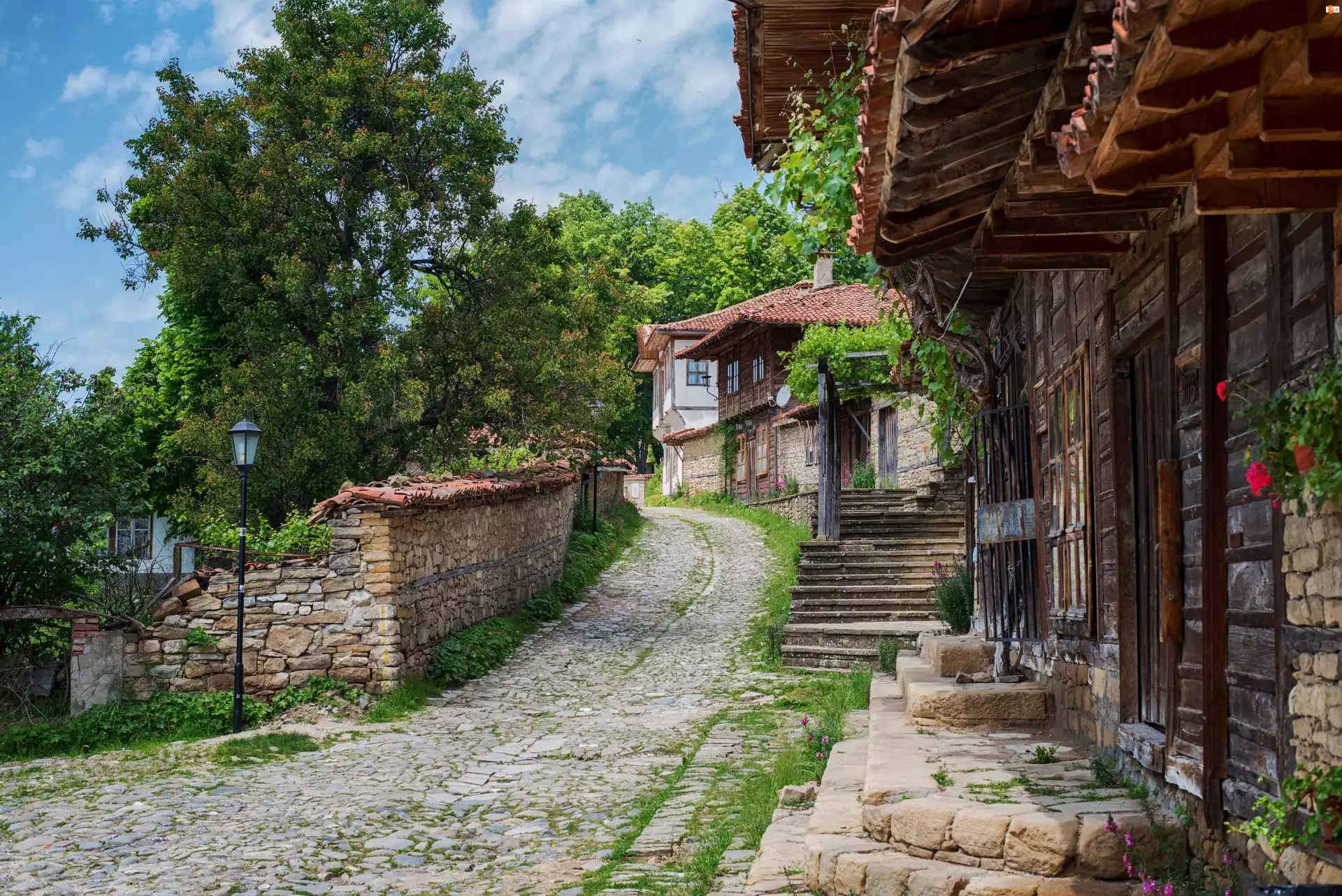Drzewa, Bułgaria, Ulica, Zheravna, Domy