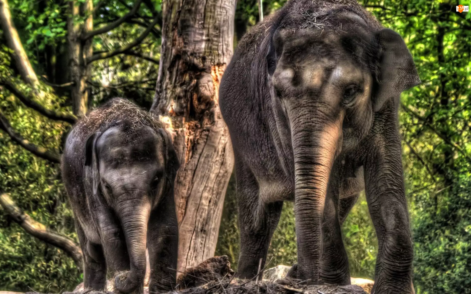 Drzewa, Dwa, Słonie