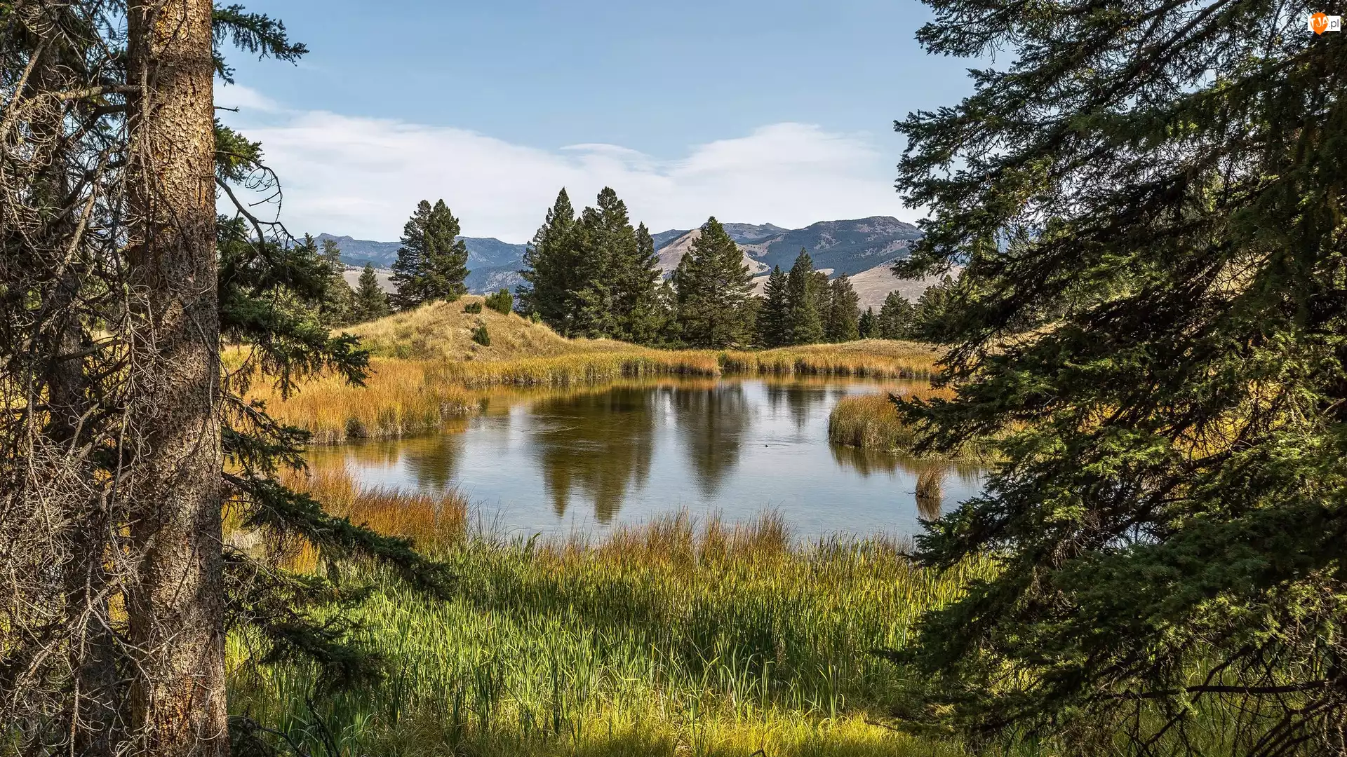 Następna >>Rzeka, Rośliny, Kamienie, Las, Drzewa, Połamane, Omszałe