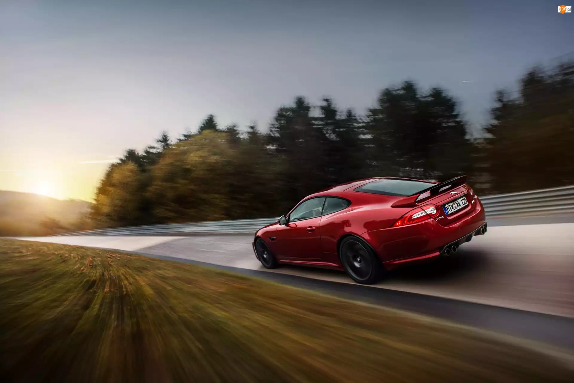 Drzewa, Jaguar, Czerwony, XK, Droga