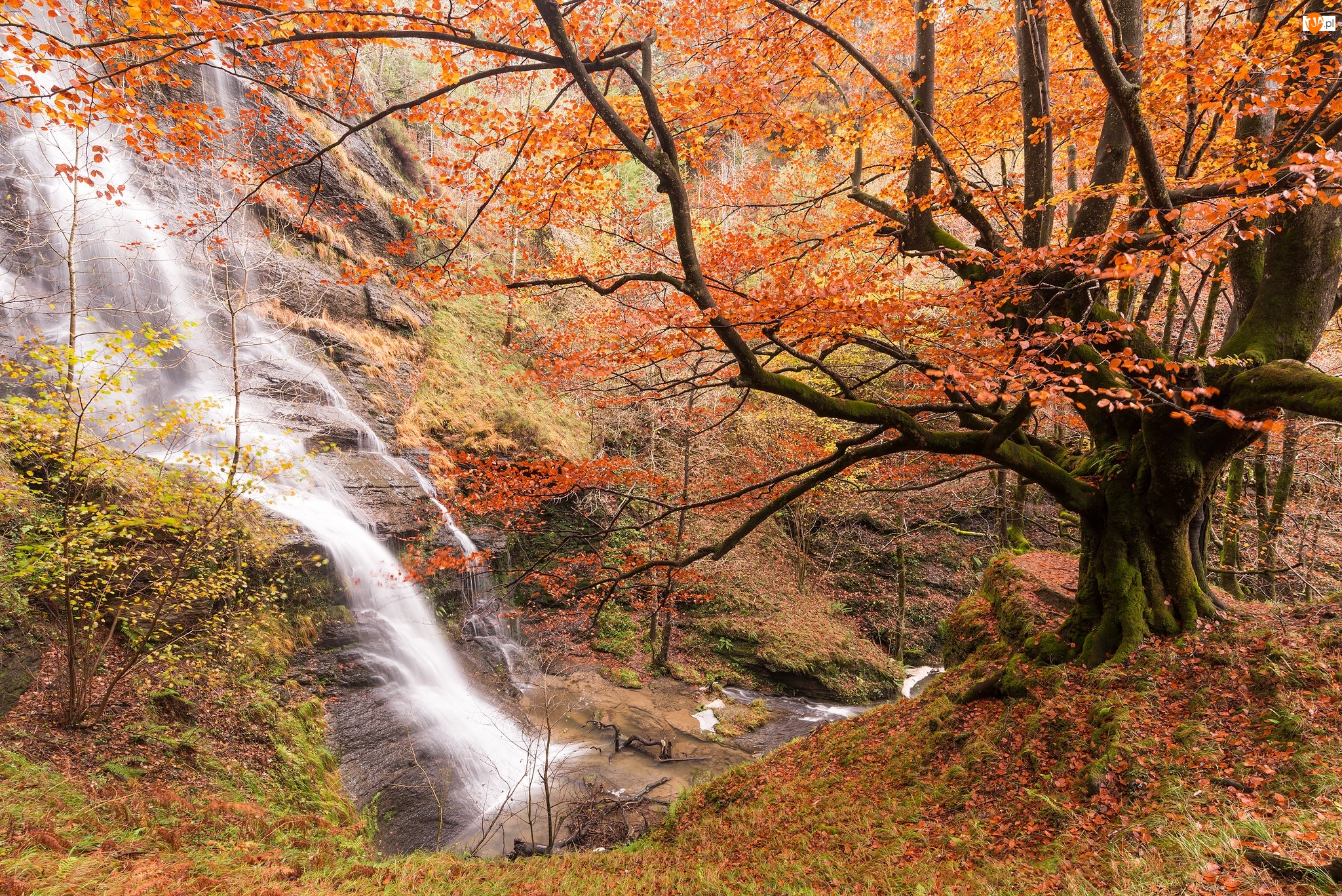 Drzewa, Jesień, Wodospad, Las, Roślinność