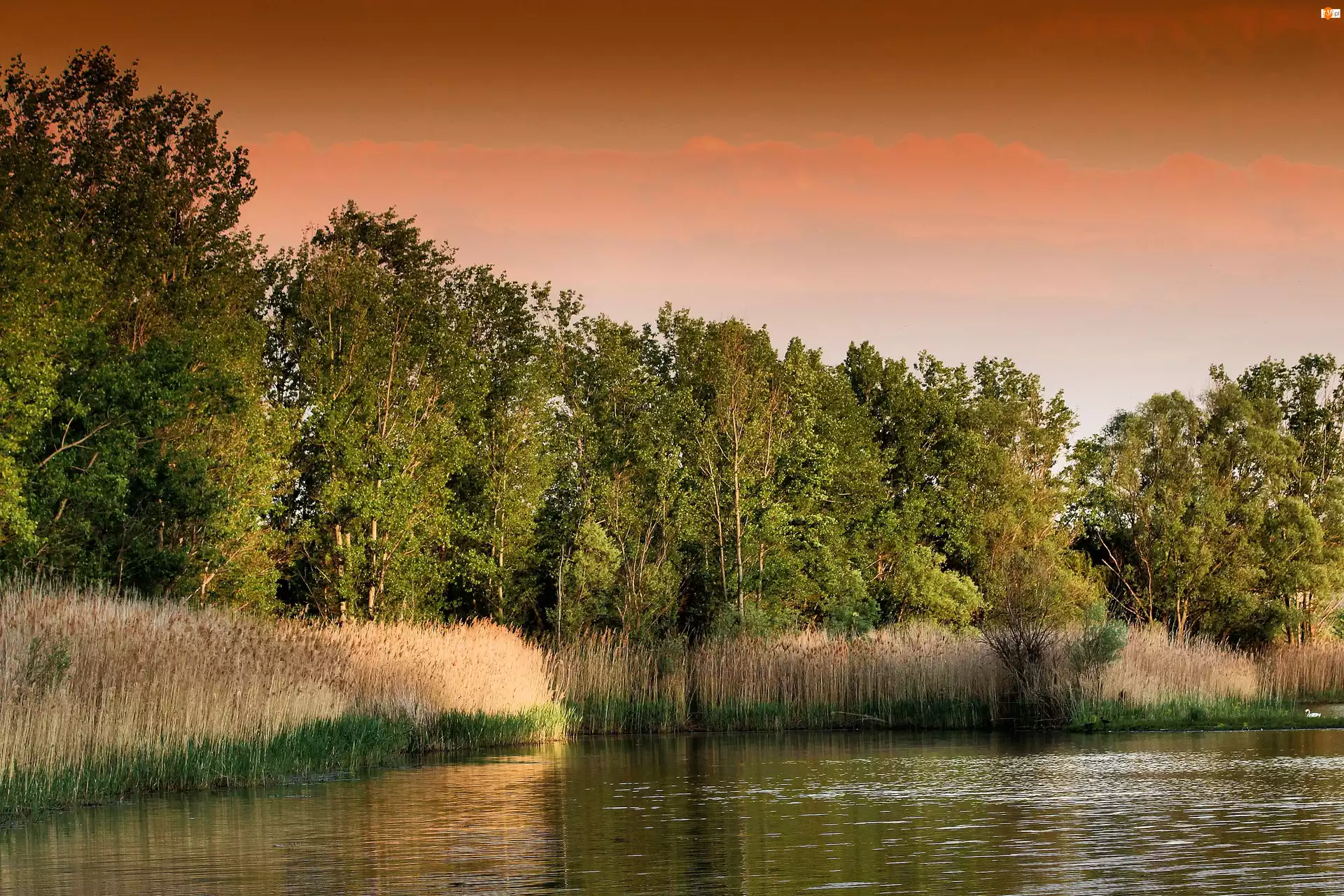 Drzewa, Jezioro, Trzciny