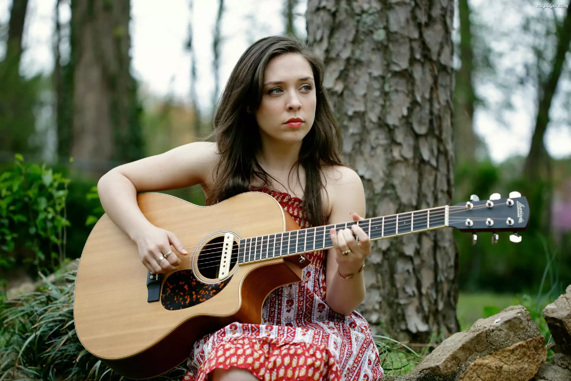 Drzewa, Kobieta, Gitara