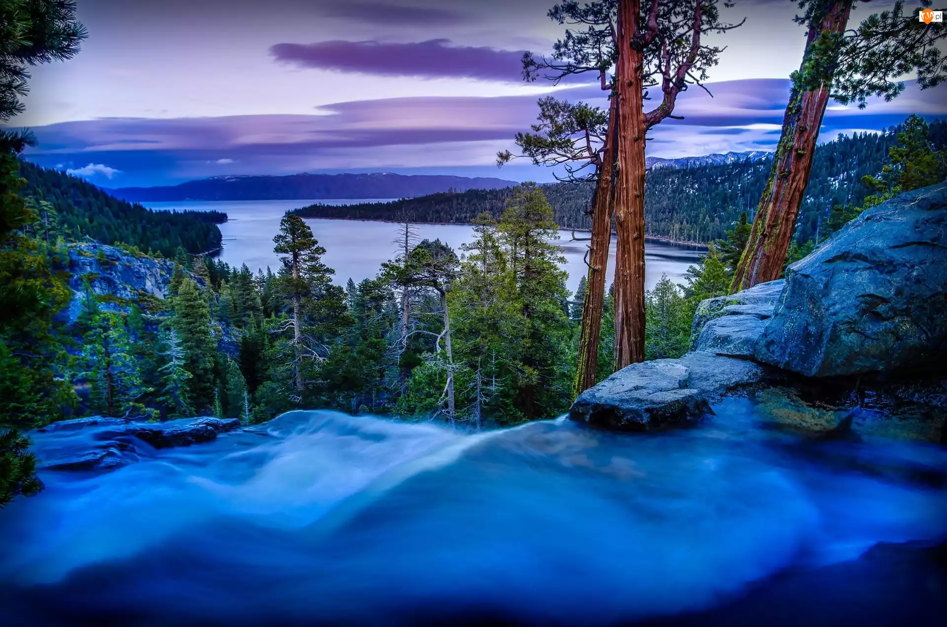 Drzewa, Krajobraz, Jezioro, Kamienie