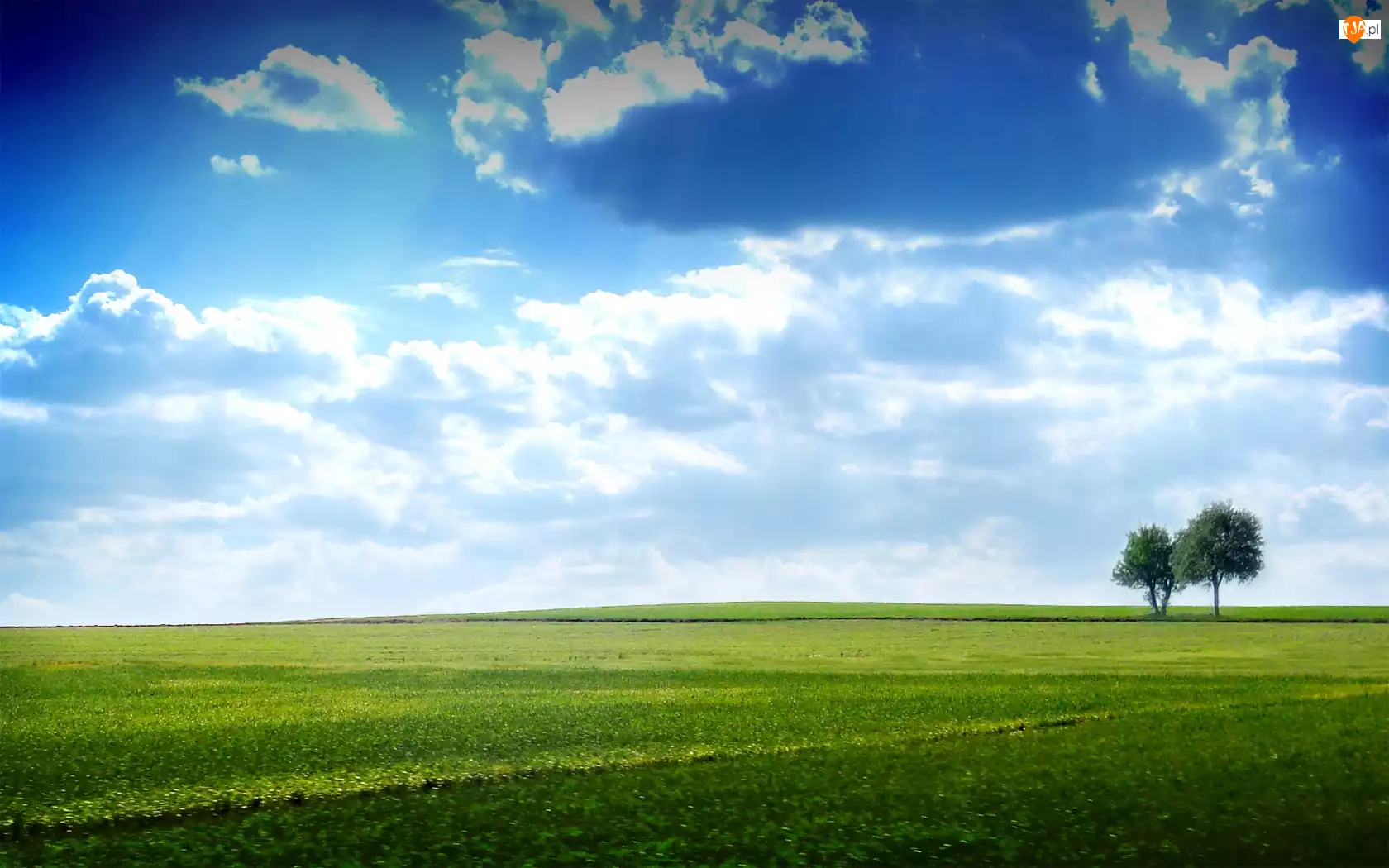 Drzewa, Łąka, Chmury