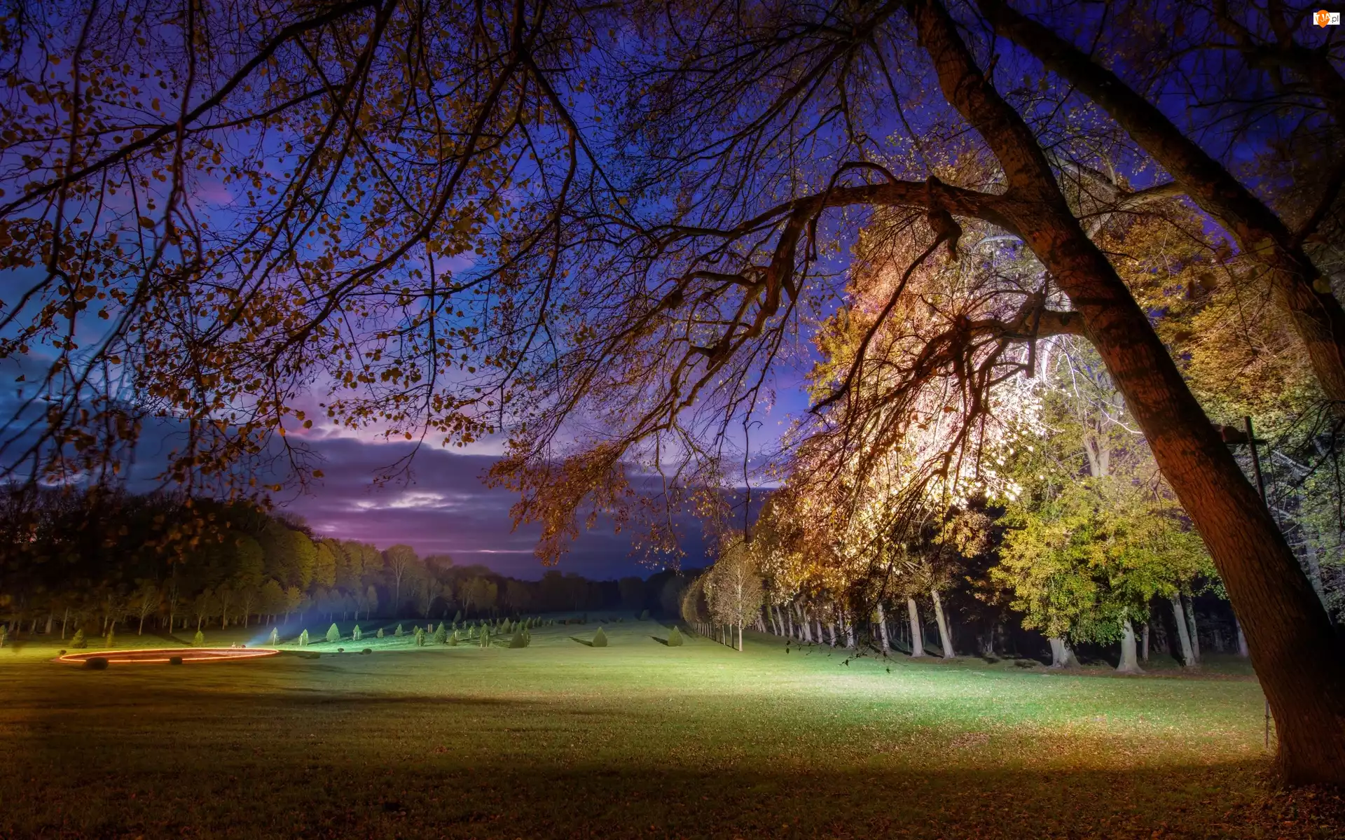 Drzewa, Liście, Park, Jesień, Łąka, Światło