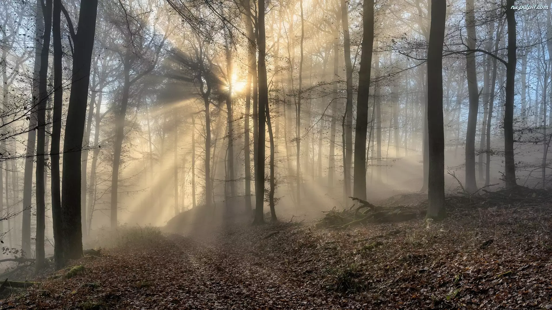 Drzewa, Mgła, Słoneczne, Las, Światło, Przebijające, Jesień