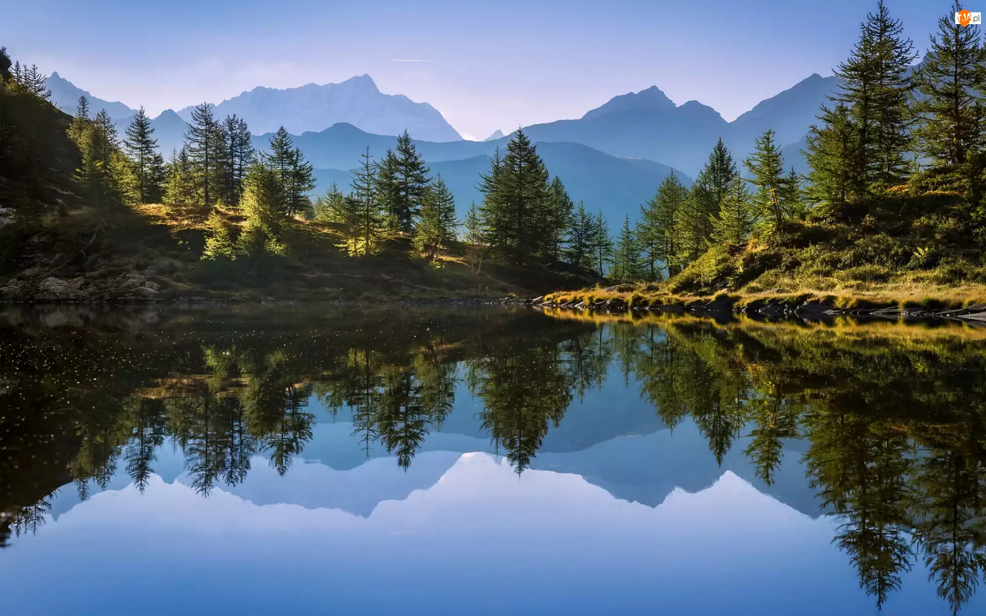 Drzewa, Odbicie, Las, Góry, Jezioro