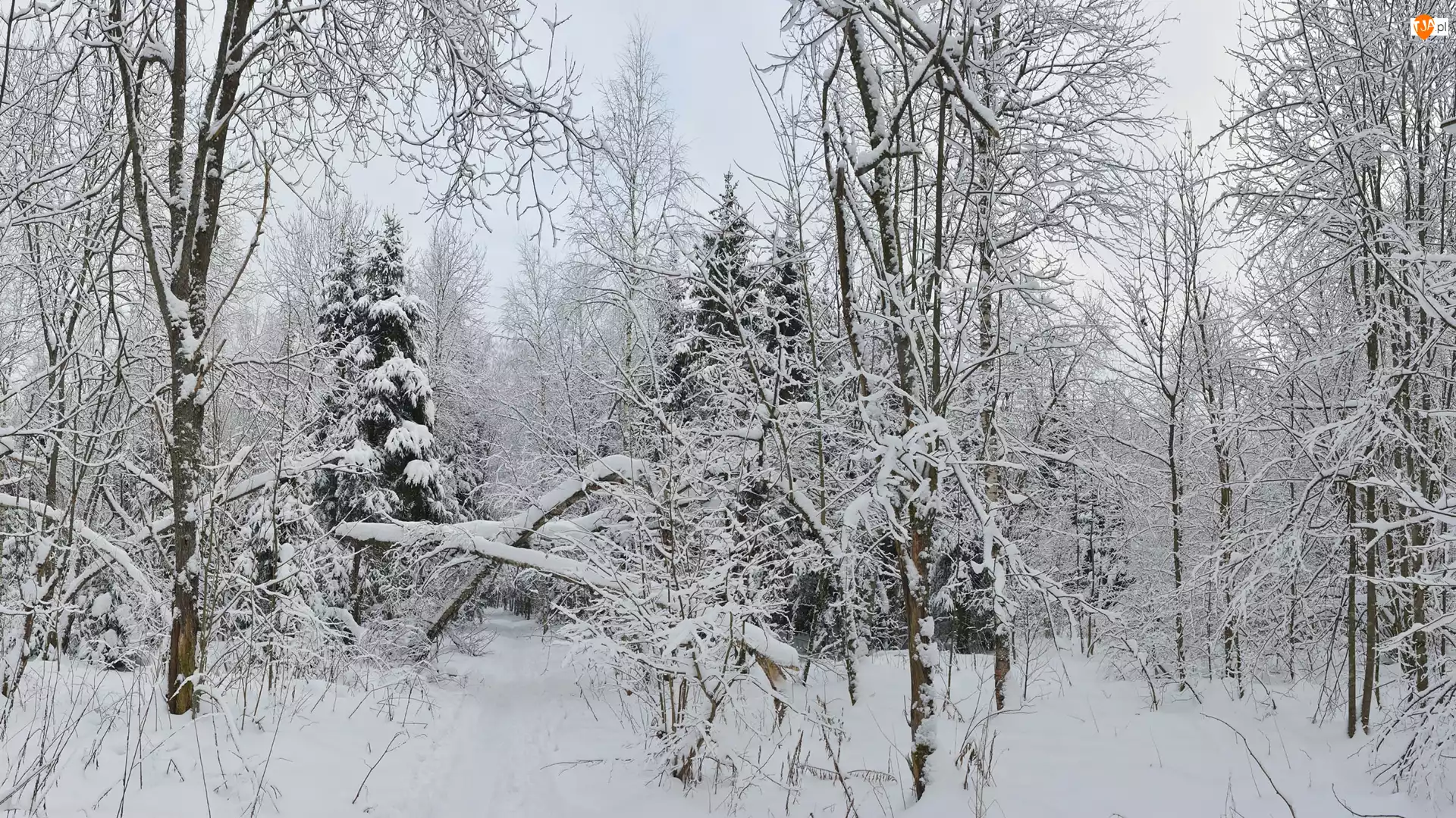 Drzewa, Śnieg, Las, Zima, Krzewy