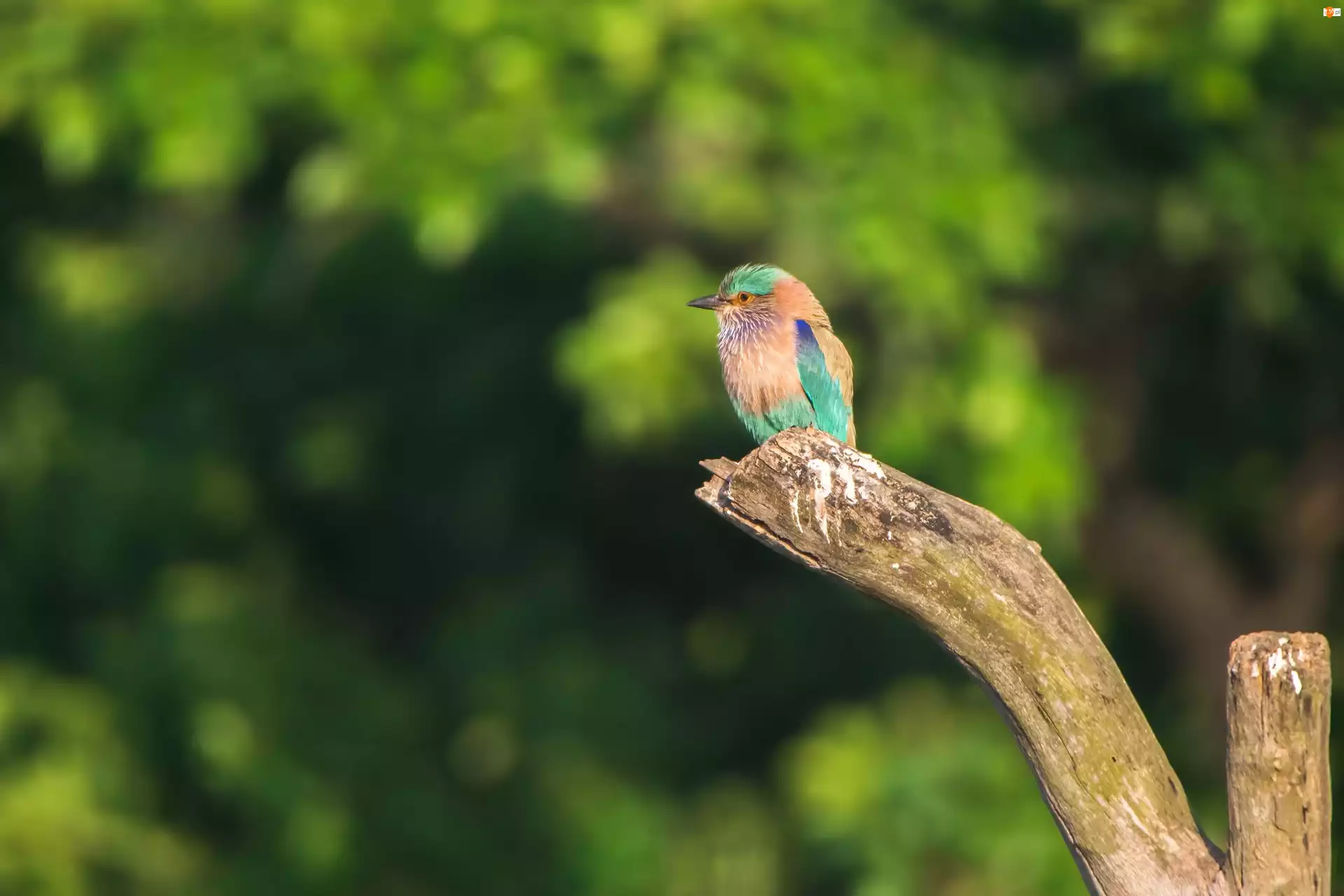 Drzewa, Ptak, Suchy, Kraska, Konar, Kolorowy
