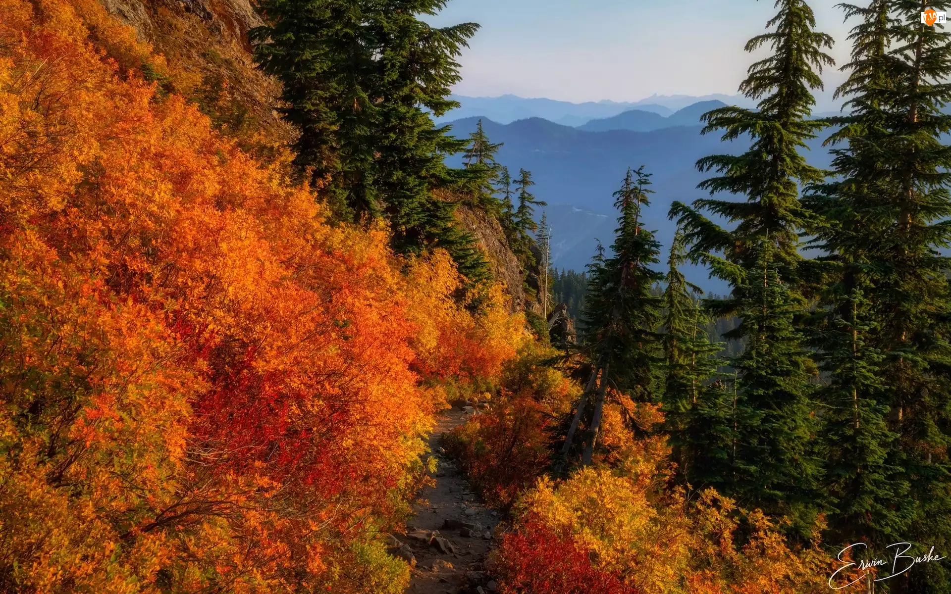 Drzewa, Ścieżka, Jesień, Góry, Roślinność