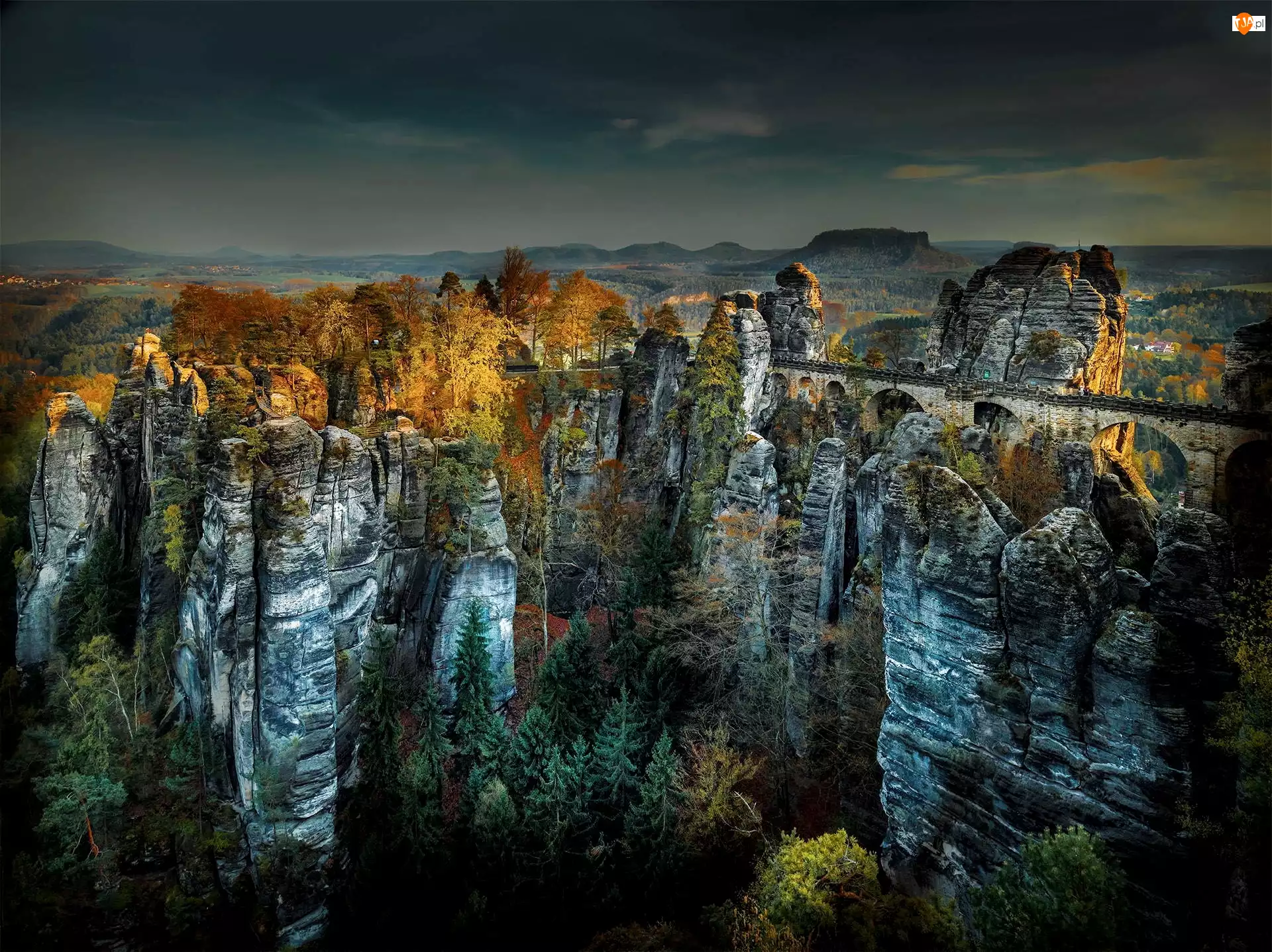 Park Narodowy Saskiej Szwajcarii, Formacja skalna Bastei, Skały, Niemcy, Góry Połabskie, Skały, Most