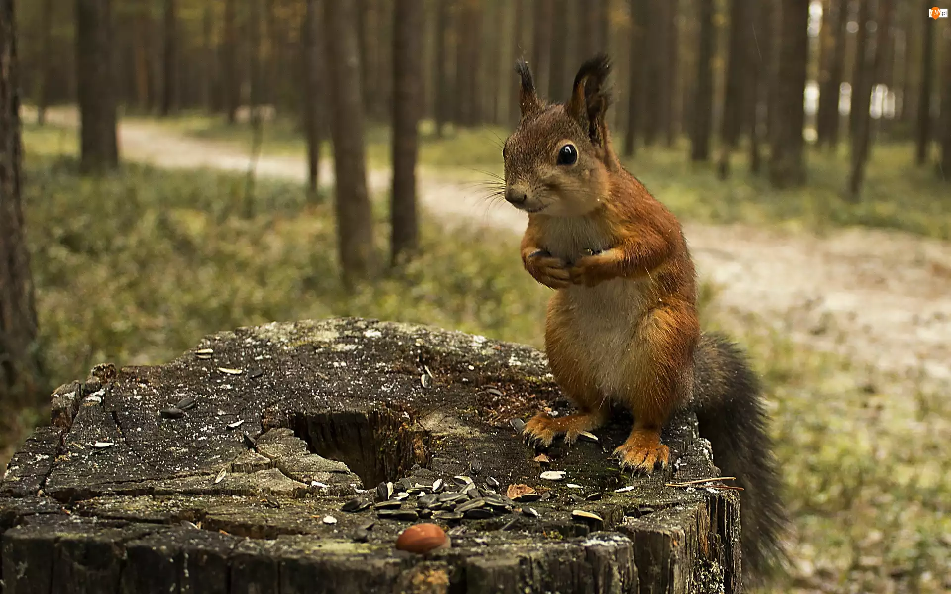 Drzewa, Słonecznika, Wiewiórka, Las, Pień, Pestki
