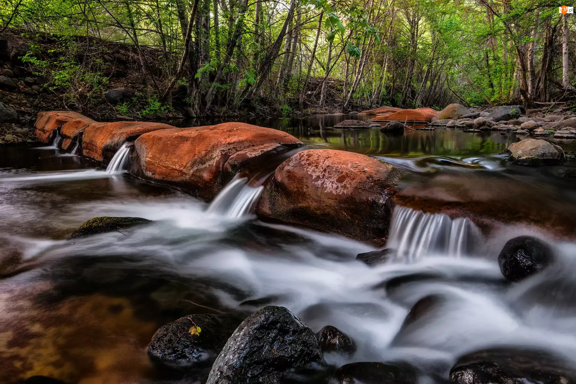 Drzewa, Stan Arizona, Las, Głazy, Kamienie, Dolina Verde Valley, Beaver Creek, Stany Zjednoczone, Rzeka