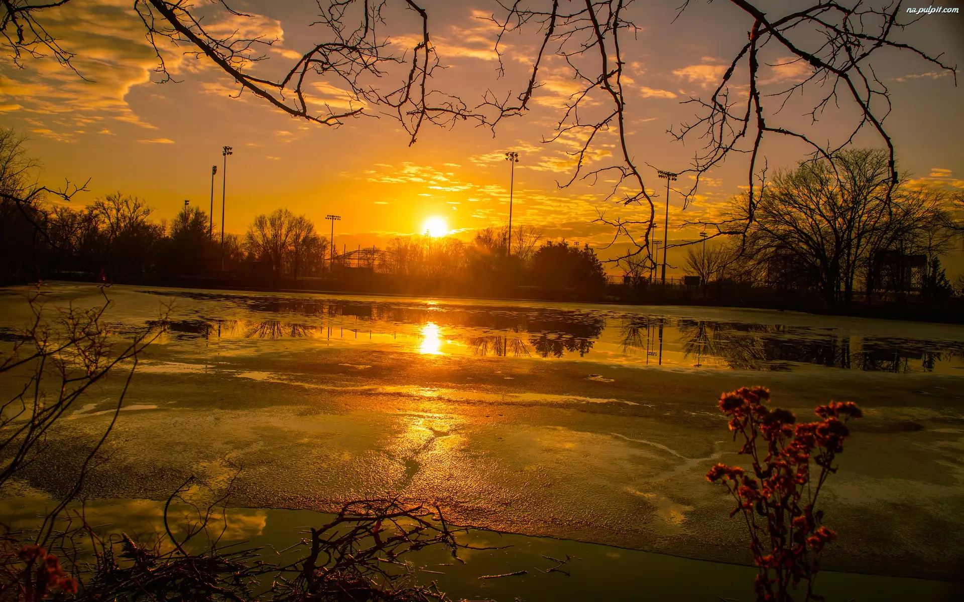 Tagi: Drzewa Staw Zachód słońca