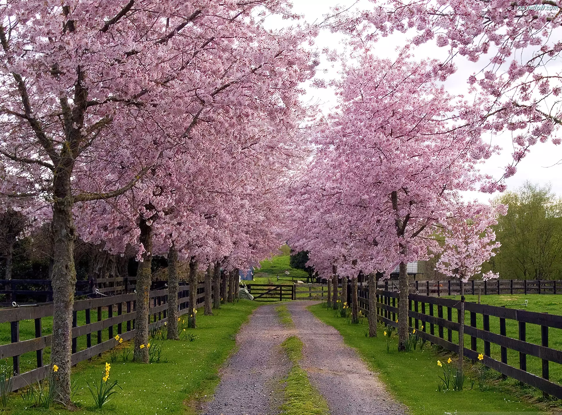 Drzewa, Wiosna, Płotki, Droga, Kwitnące