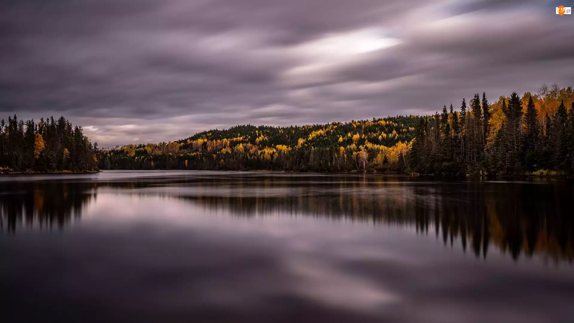 Drzewa, Zachmurzone, Kanada, Lasy, Quebec, Rzeka M
