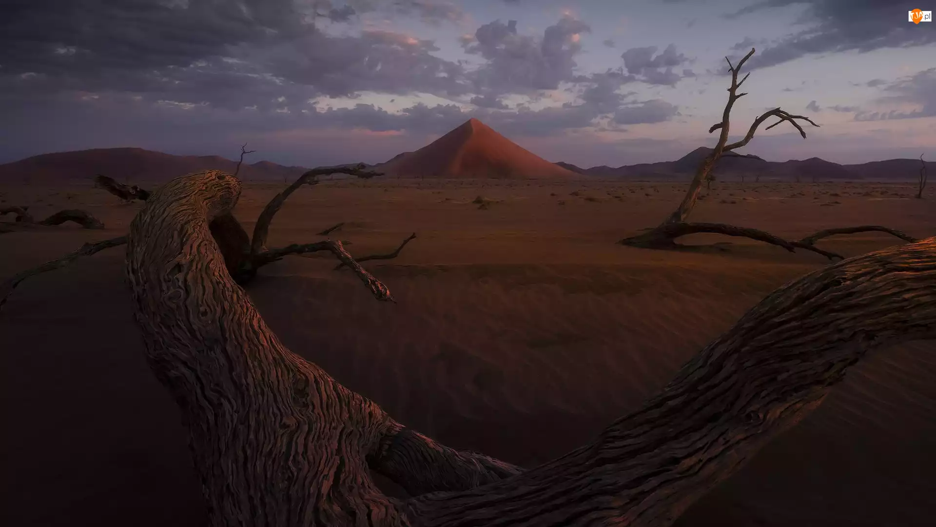 Drzewo, Pustynia Namib, Wydmy, Namibia, Piaskowe, Powalone, Afryka, Góry