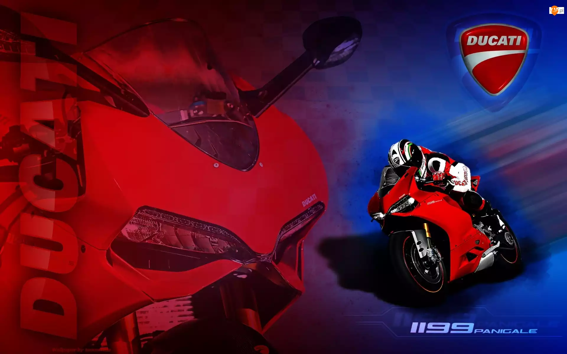 Motocyklista., Ducati 1199 Panigale, Czerwony, Logo