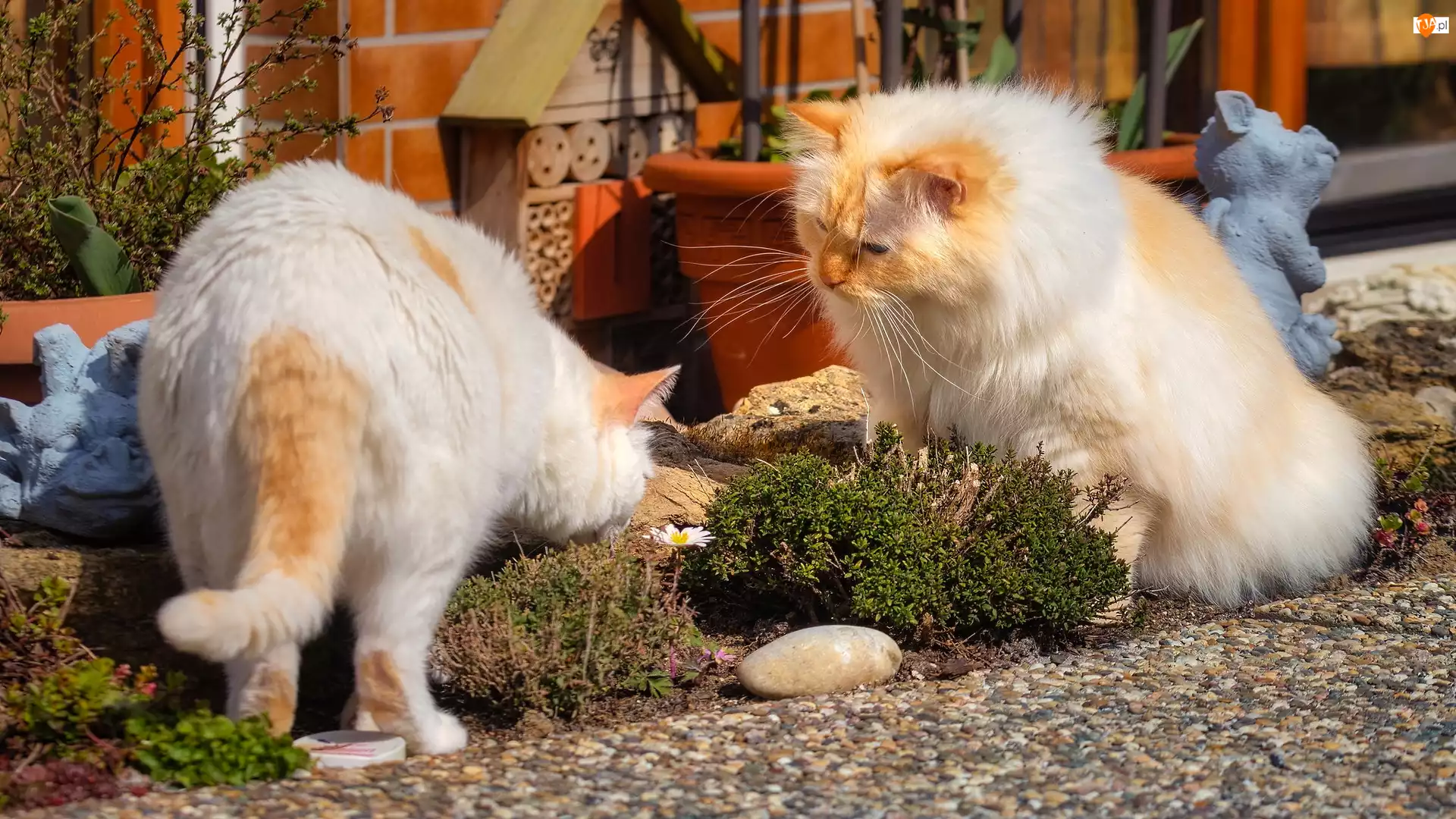 Dwa koty w ogrodzie