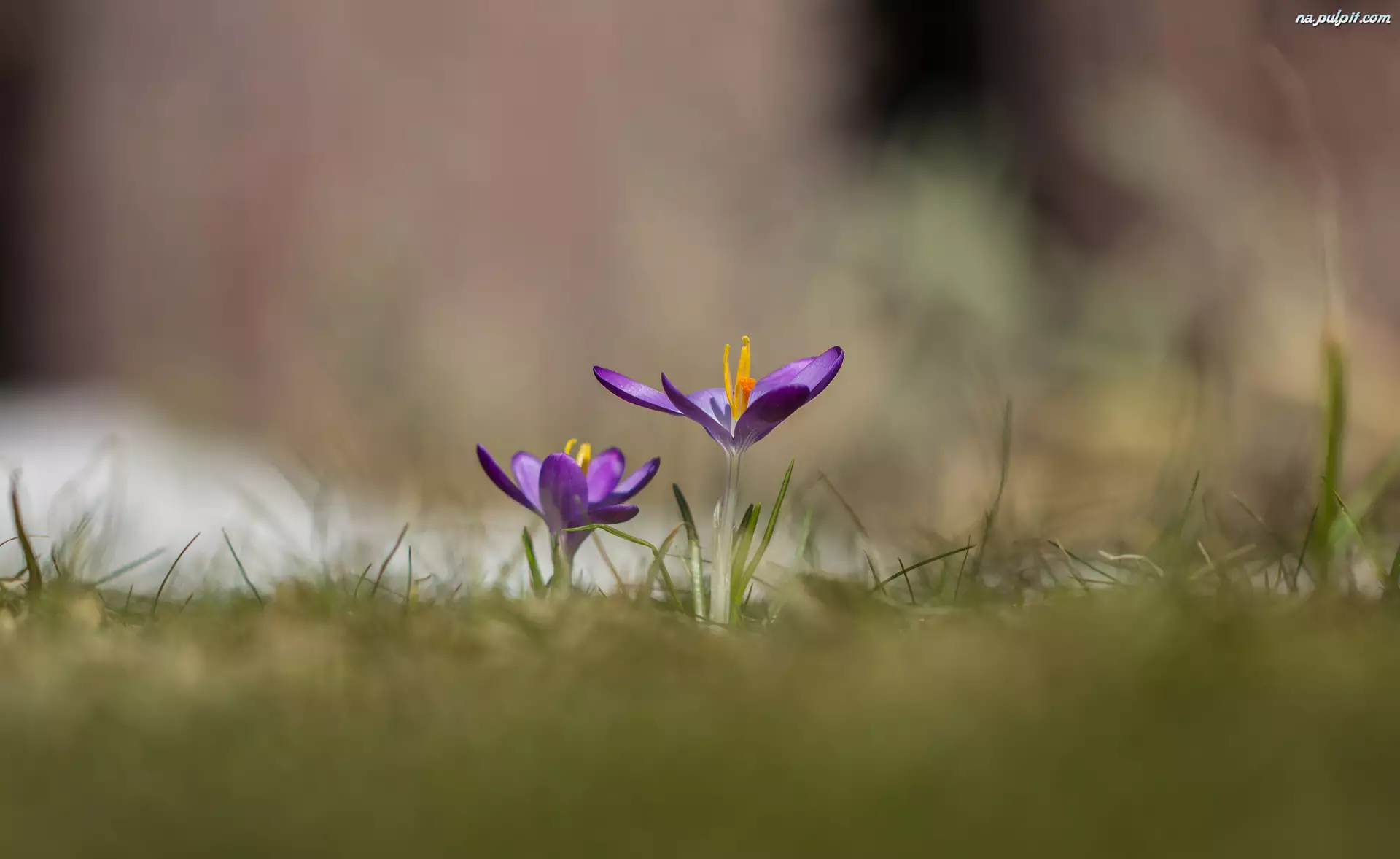 Rozmyte tło, Kwitnące, Krokusy