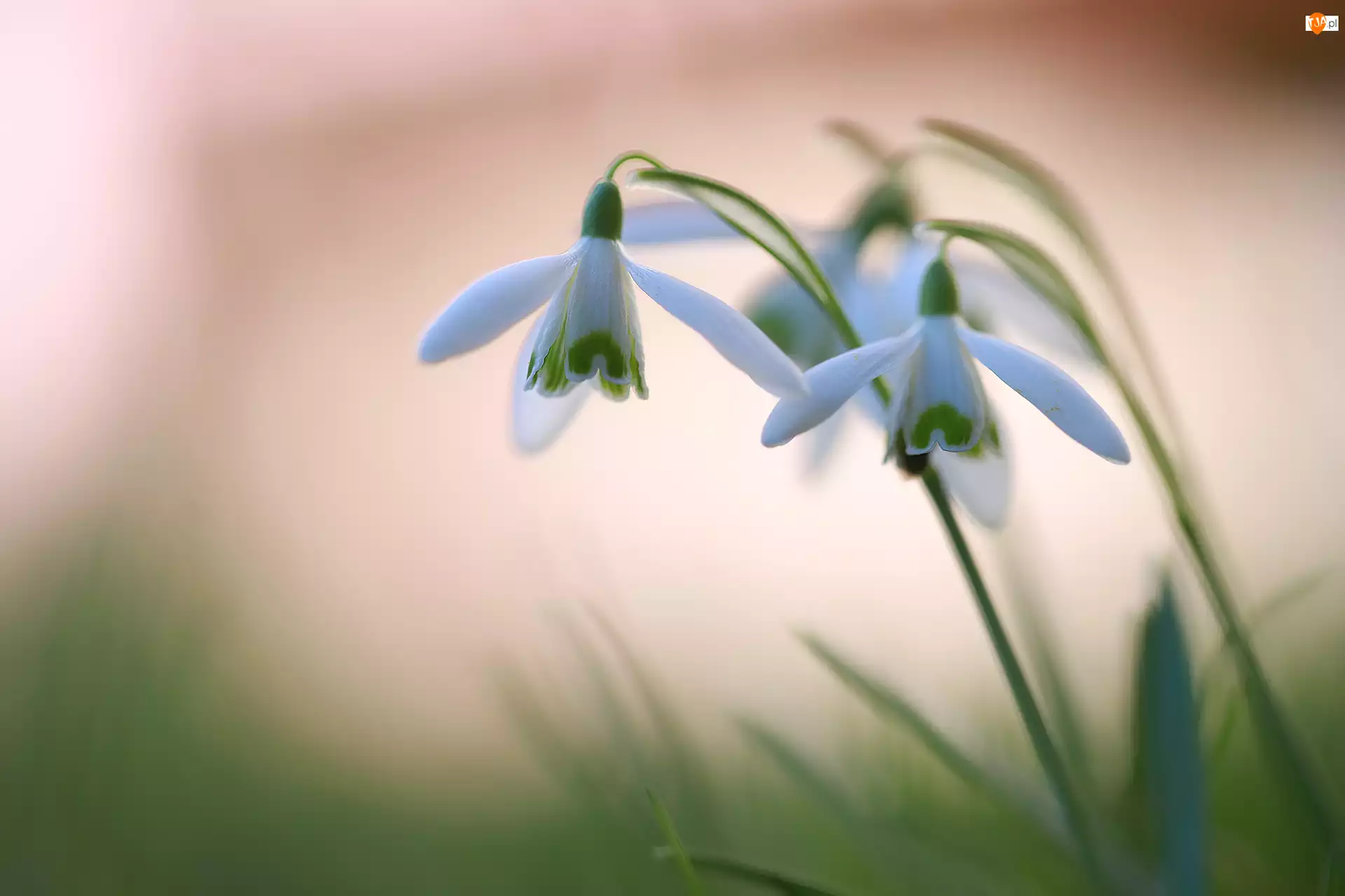 Dwa, Przebiśniegi, Białe, Kwiaty