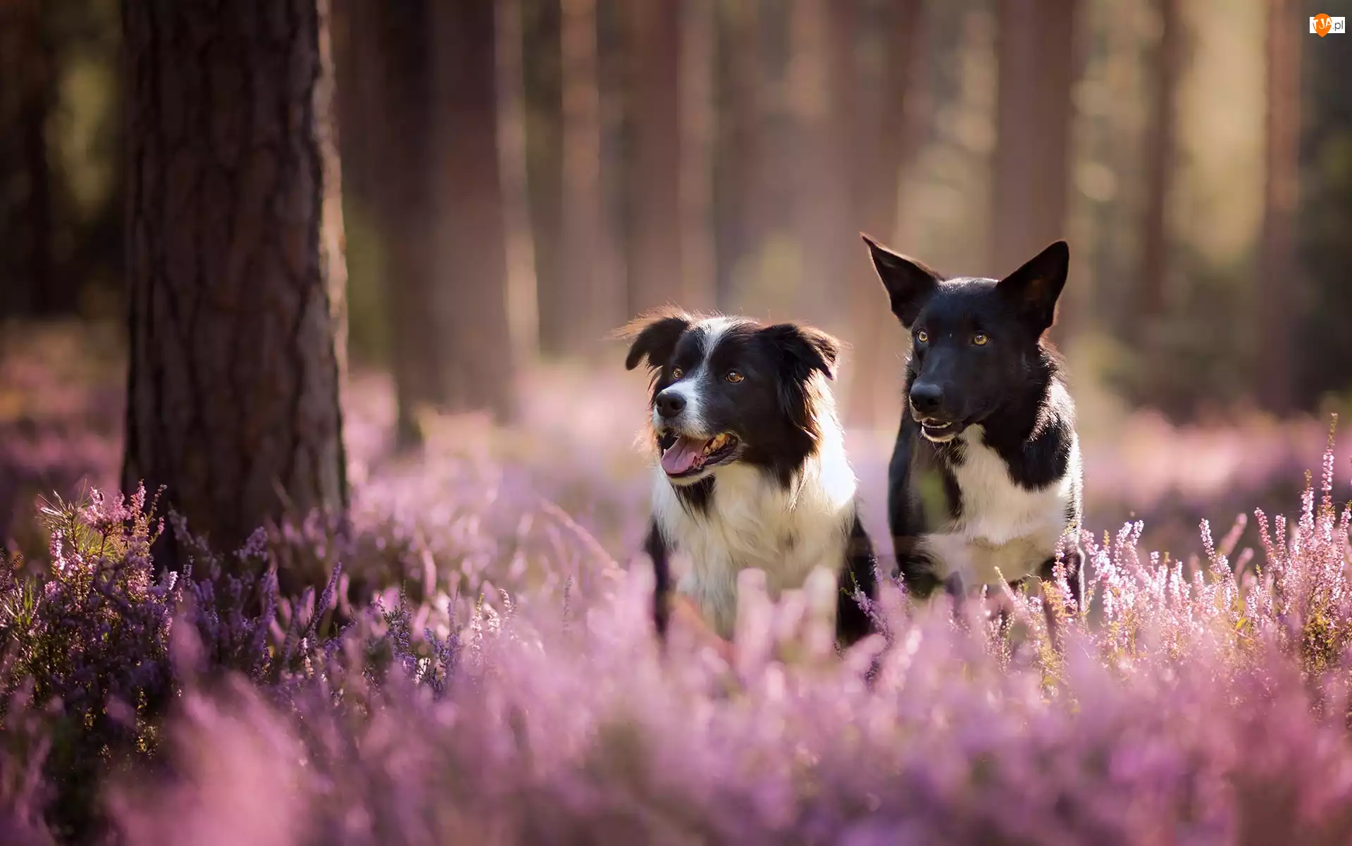 Wrzos, Dwa, Border collie, Psy, Las