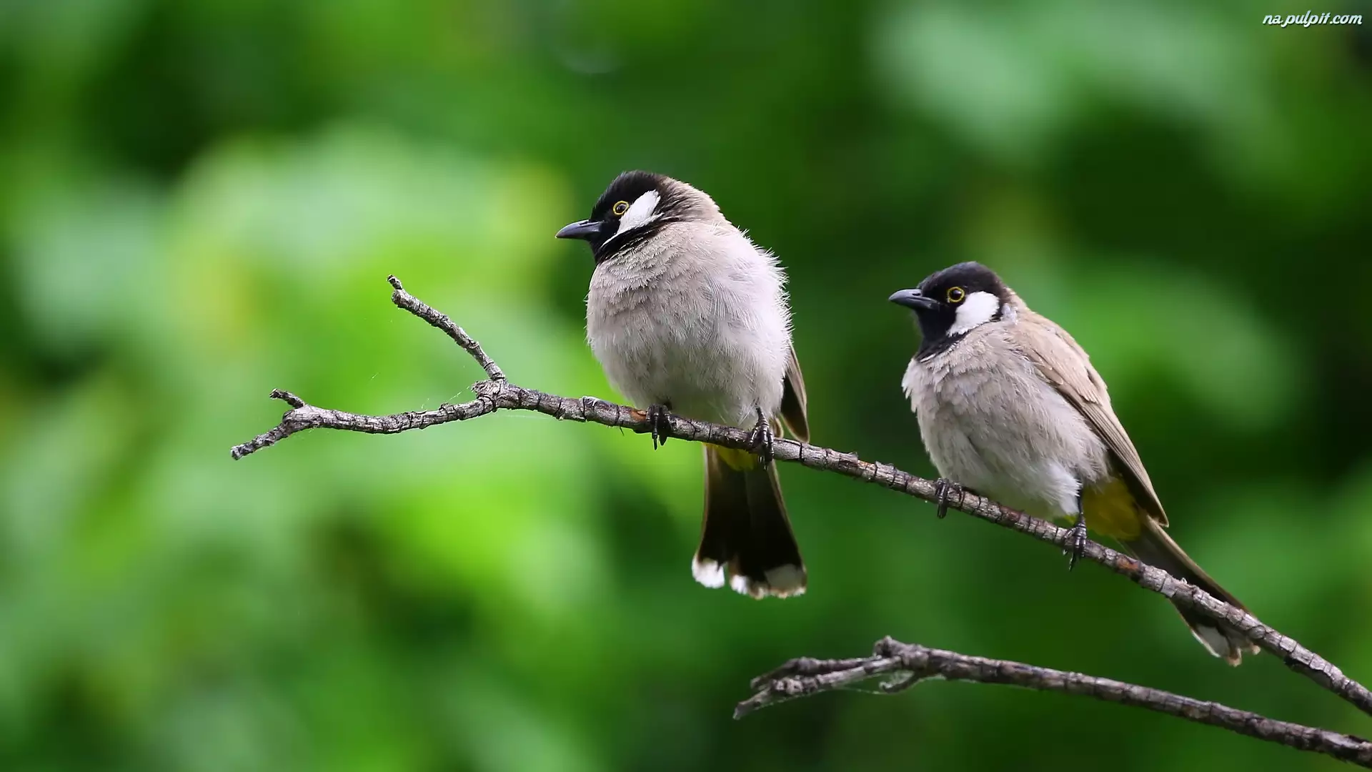 Gałązka, Szaro-czarne, Dwa, Ptaki