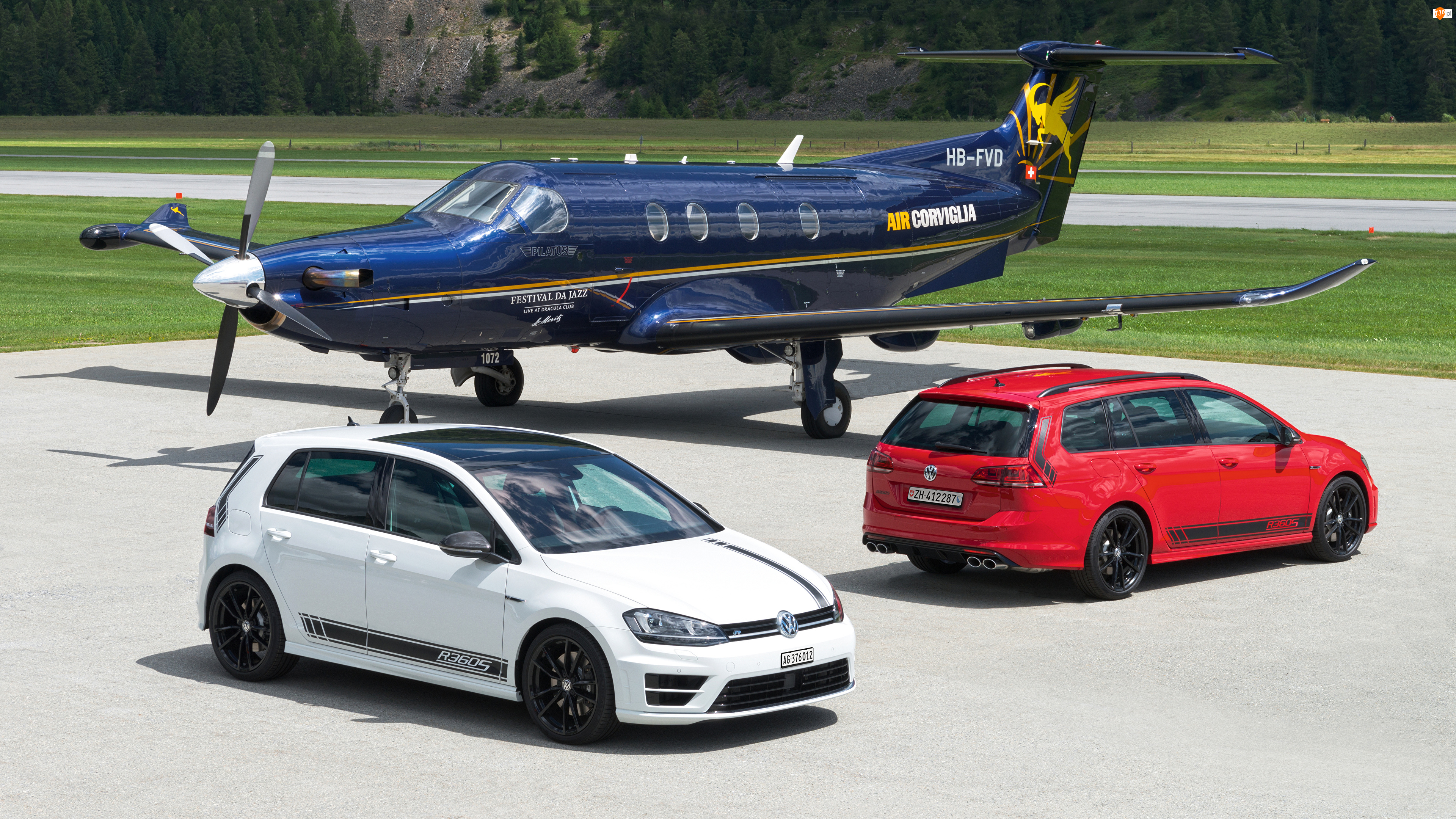 Samochody, Biały, Pilatus PC-12, Dwa, Samolot, Volkswagen Golf R360S, Czerwony