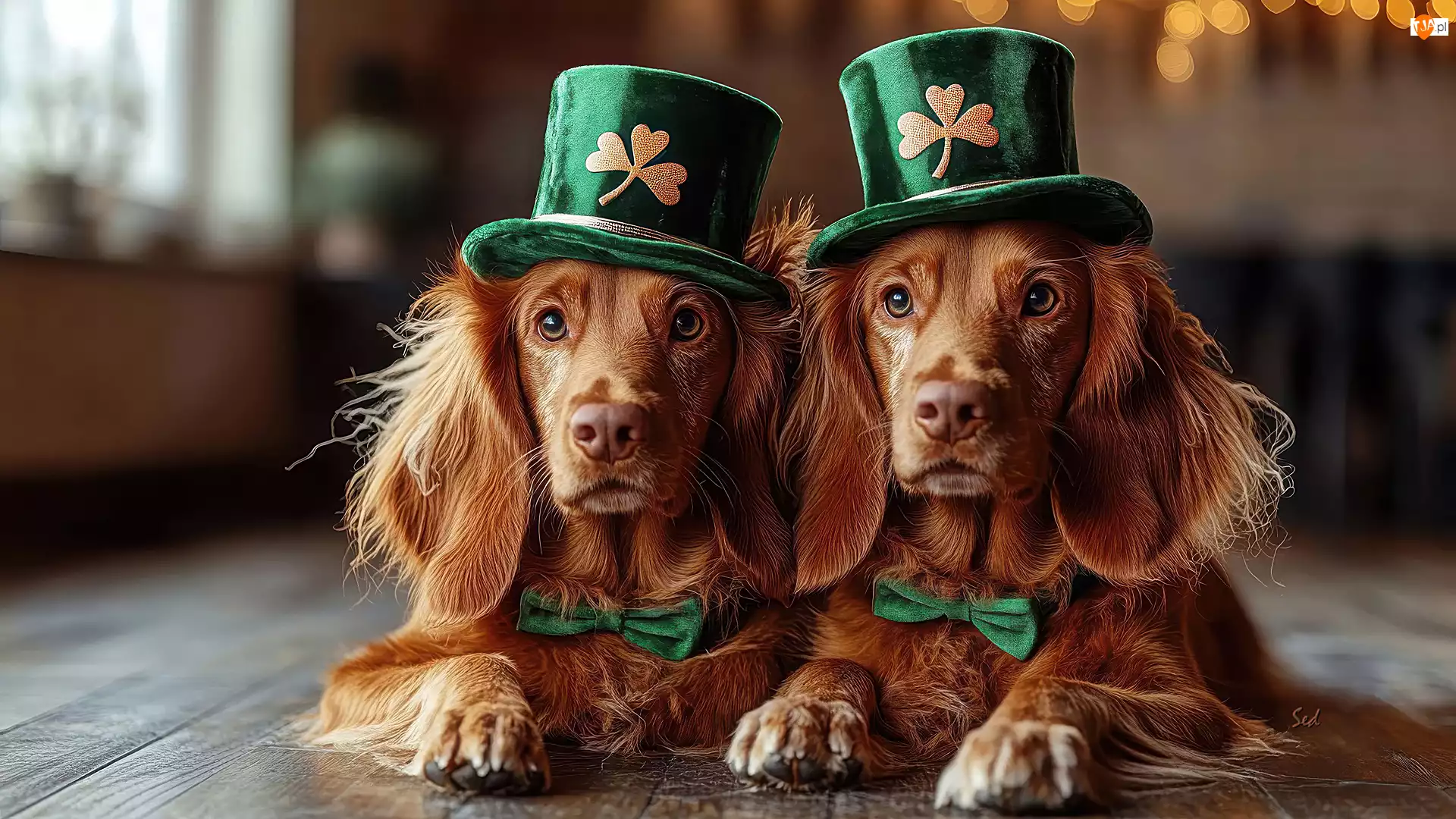 Dwa, Psy, Grafika, Rude, Cylindry, Kapelusze, Zielone