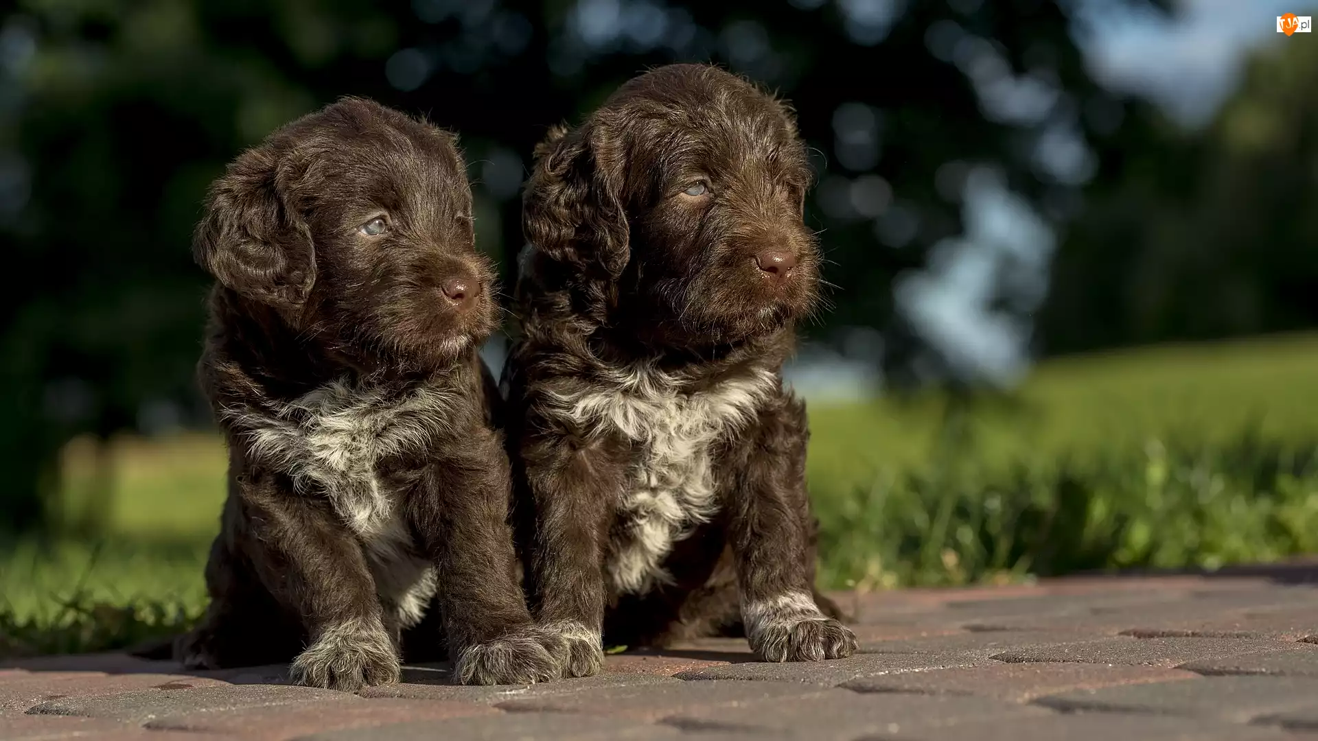 Brązowo-białe, Brukowa, Szczeniaki, Dwa, Kostka