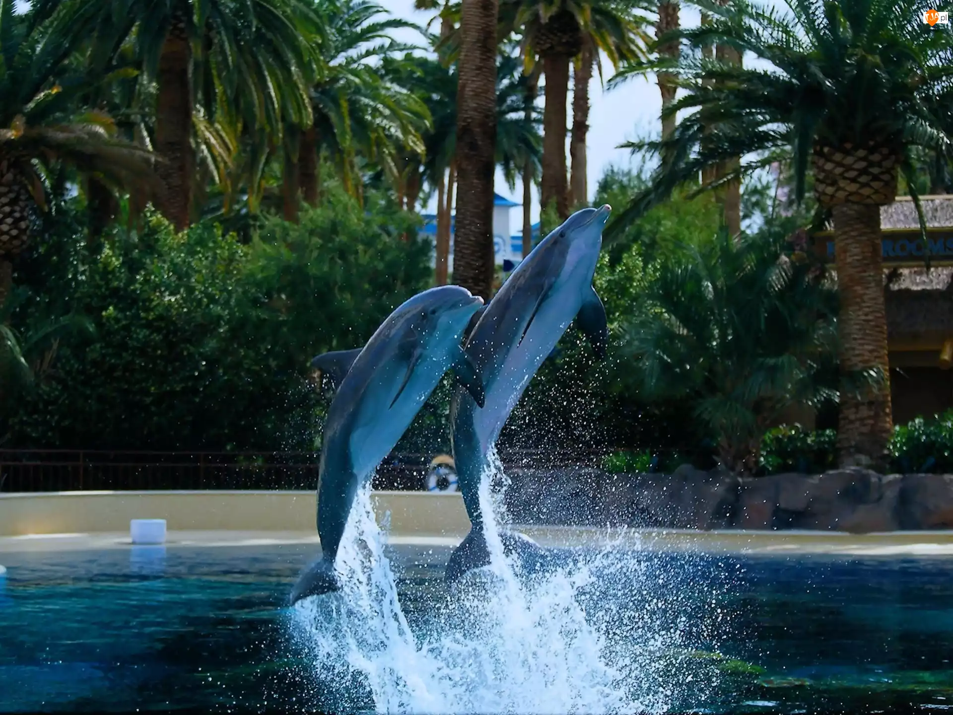 Dwa, Woda, Delfiny, Palmy