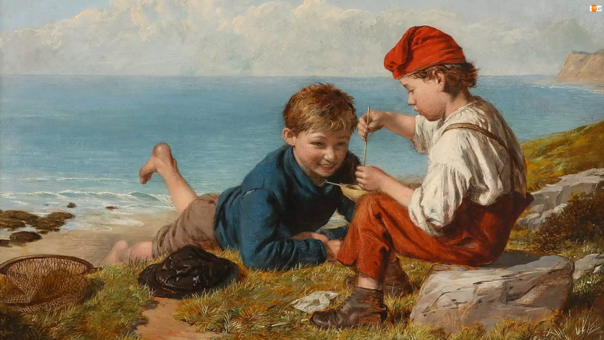 Obraz, Malarstwo, Chłopcy, Morze, William Hemsley, Wędkowanie