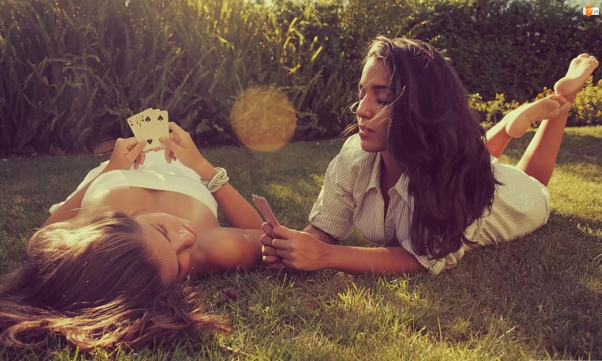 Dwie, Łąka, Kobiety, Karty