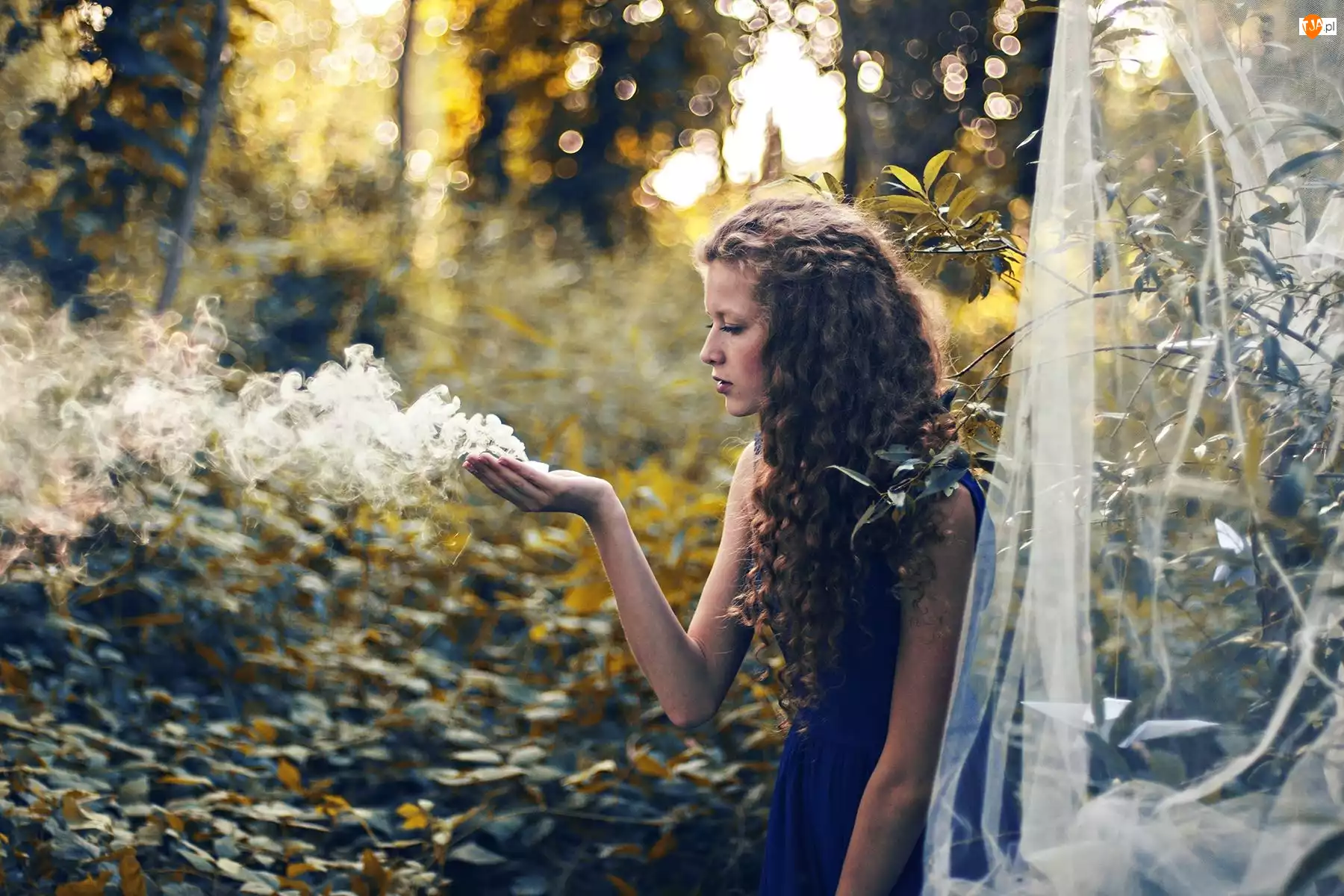 Dym, Kobieta, Niebieska, Blondynka, Suknia