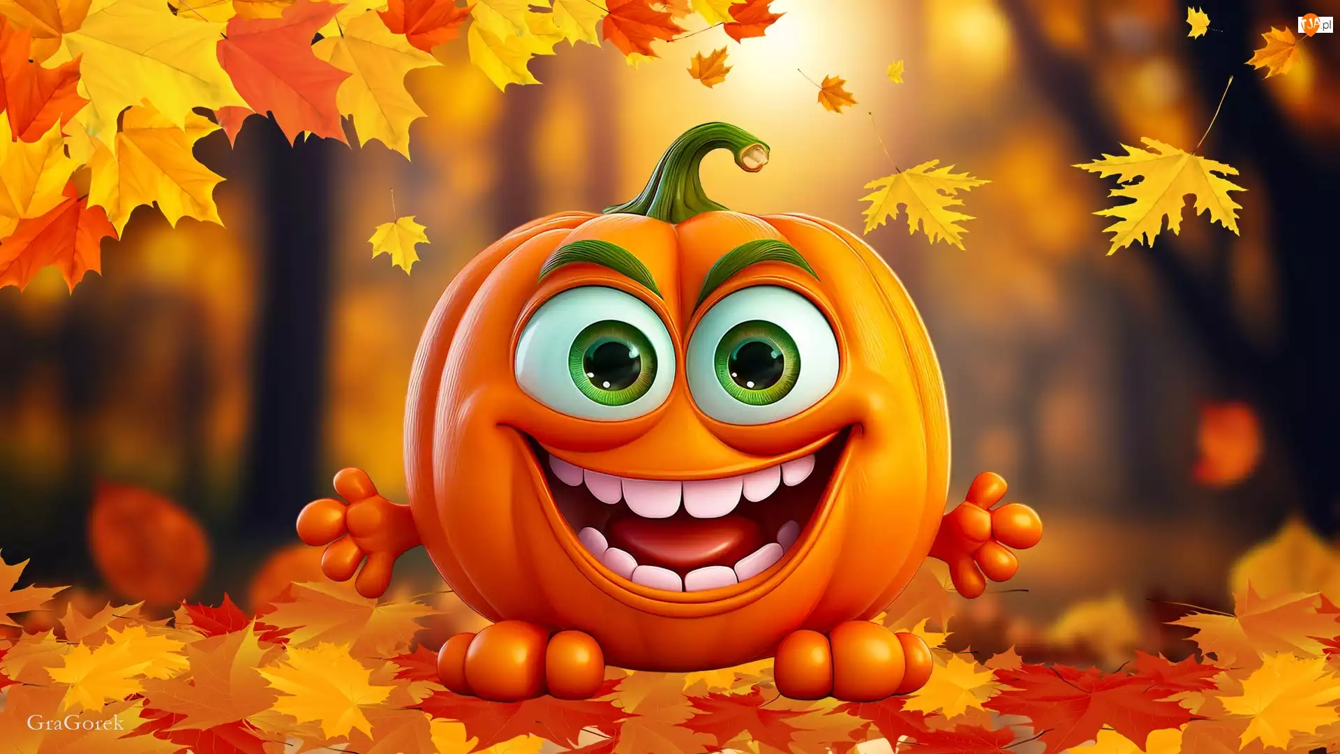 Dynia, Grafika, Park, Jesień, Uśmiech